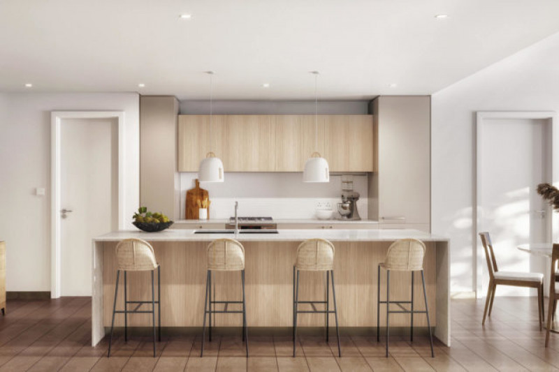 Апартаменты уже оборудованы удобными кухнями и встроенными вместительными шкафами-купе из натуральных материалов.