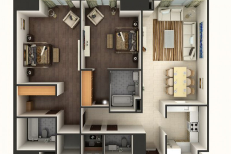Сообщество предложит просторные квартиры с 1, 2 и 3 спальнями. Отделка квартир включает в себя натуральные элементы в сочетании с современным дизайном. Планировка всех резиденций включает в себя просторные балконы, с которых открывается вид на горизонт Дубая и сверкающий канал, пролегающий между материком и островом Крик.