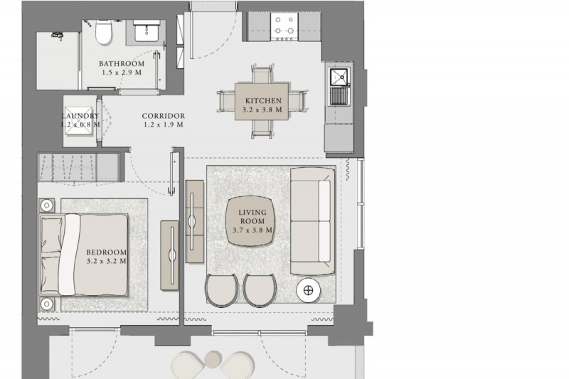MBR City – это настоящий город в городе. Это оживленный район с развитой и продуманной инфраструктурой. Вы можете наслаждаться комфортом жизни за городом, но при этом находиться всего в 10 минутах от деловых и туристических кварталов Дубая. Архитектура комплекса по-современному удивляет. Два сооружения со строгими и прямыми линиями соединяются подиумом, на котором расположен инфинити-бассейн. В студии выполнена чистовая отделка в скандинавском стиле, где преобладают спокойные приглушенные оттенки.