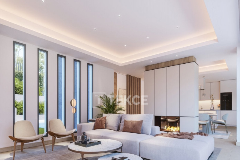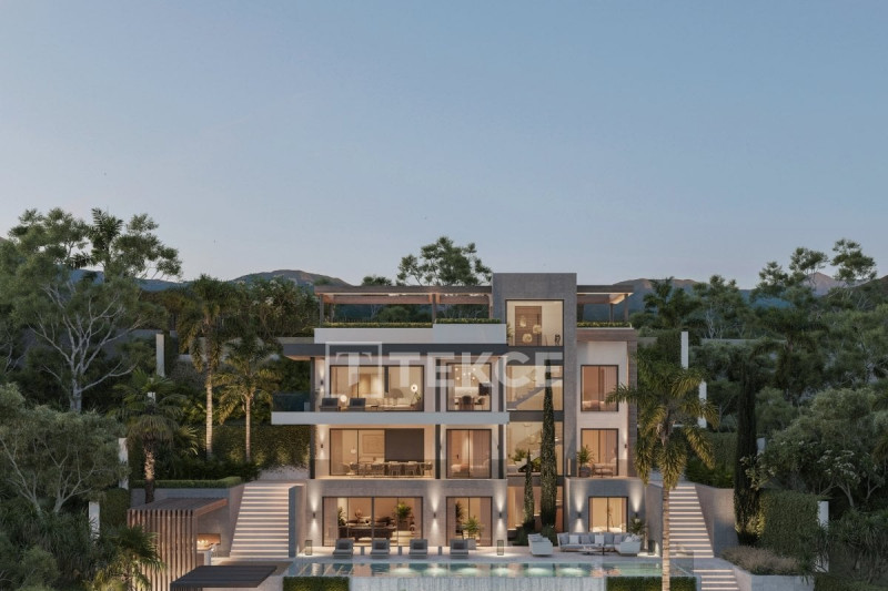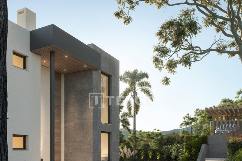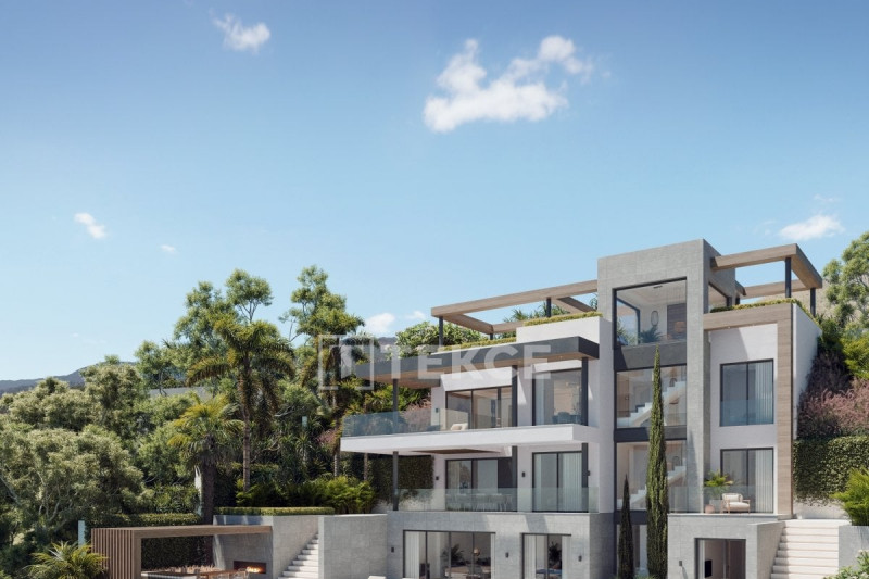 The turnkey villa is situated in the gated residential macro-compound. The exclusive community has outstanding on-site facilities such as a spa with a sauna and a Turkish bath, a communal pool, playgrounds, a fitness center, a 24-hour security system, a caretaker, basketball, volleyball, and football courts, a business center, sky lounge with glass moon roof for stargazing and an infinite bubble pool. The villa is set on a generous plot of more than 1100 sqm perfectly integrated into the landscape. The outdoor areas include mature gardens, a swimming pool, uncovered terraces, a solarium, and a jacuzzi.