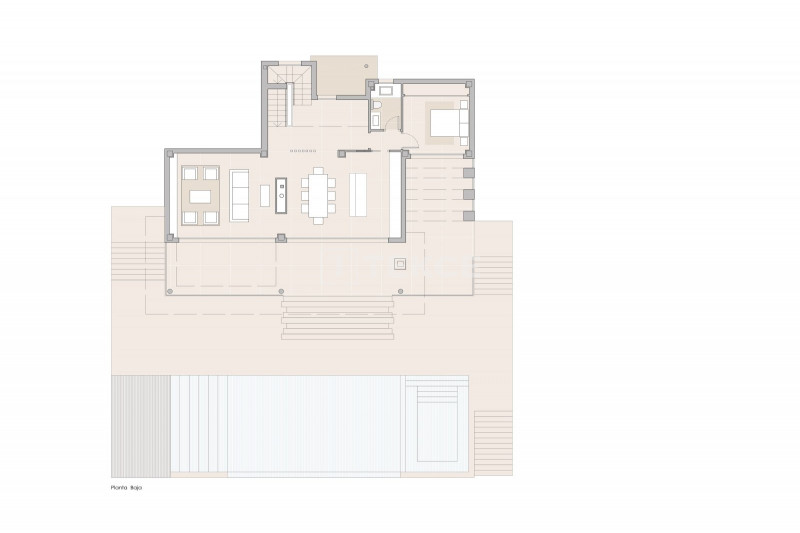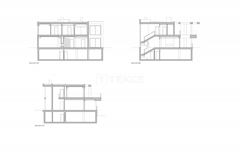 This contemporary turnkey villa is built up to the highest standards. Its south orientation, the application of extra large floor-to-ceiling windows, and the smart distribution of the interior spaces over three levels aim to make the most of the natural light. Definitely one of the highlights of this house is its double-height ceiling in the living room which gives you a great sense of spaciousness. The bright villa comes very well equipped with some features like an entertainment room, a sauna, underfloor heating, a/c, and a home automation system.