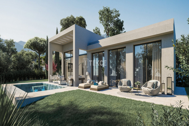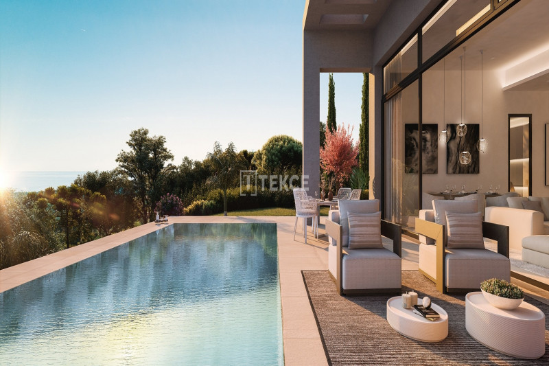 There are only 6 detached villas nestled on the slope to enjoy the best possible panoramic views. Each villa is built on an individual fenced plot with exterior areas that feature easy-to-maintain landscaped gardens with an irrigation system, an outdoor infinity pool, and a sun deck. The compound has a 24/7 guarded access road to provide high privacy and security.