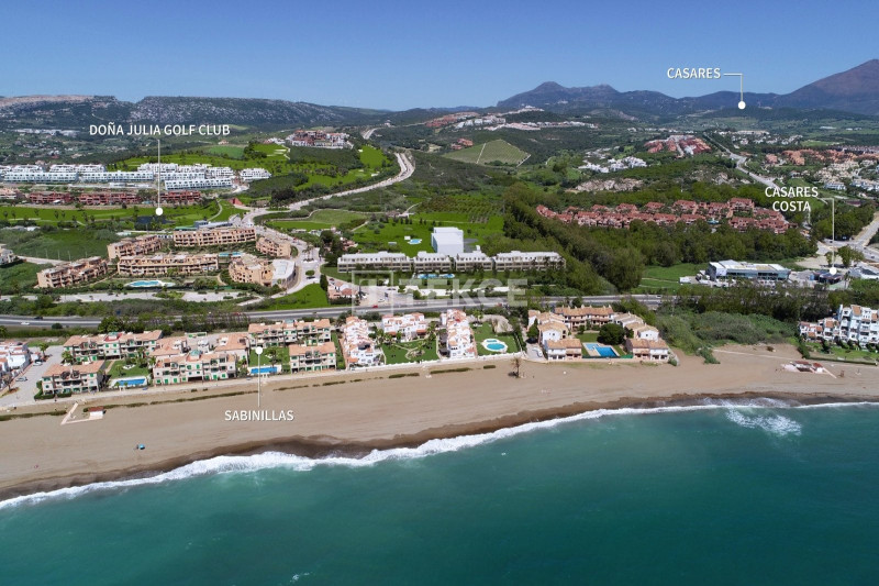 Modernly designed apartments in Casares are 30 minutes to the world-famous Puerto Banús, 35 minutes to Marbella and 10 minutes to Sotogrande Marina and charming Estepona. As neighbouring the province of Cadiz, the beautiful beaches of Tarifa are within a short drive. It takes approx 1 hour to get to the International Airport of Málaga and the high-speed AVE train station and also 25 minutes to Gibraltar Airport.