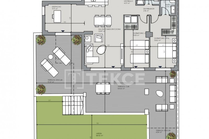 Apartments in Malaga are equipped with a kitchen integrated into the living room and fully equipped and furnished, hot/cold air conditioning, garage, laundry room, and storage room. Each block has its own independent access to the garages except the duplex penthouses that have 2 parking spaces.