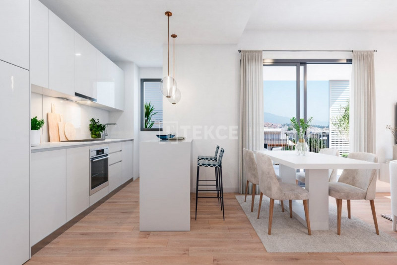 The complex is located in one of the sought-after areas of the municipality, surrounded by green areas. It has quick and easy access to the main points of interest, services, and amenities. The complex is perfectly located for nature, golf, and sea lovers. Apartments in Estepona Spain are only 2,5 km from the sandy beaches, and 15 km from Estepona’s old town center and the marina. It takes around a 15-minute drive to reach the famous Puerto Banus, 25 minutes to the center of Marbella, and less than an hour to Malaga’s international airport. Also, close by there are internationally recognized golf courses in the golf valley triangle of Estepona, Marbella, and Benahavis.