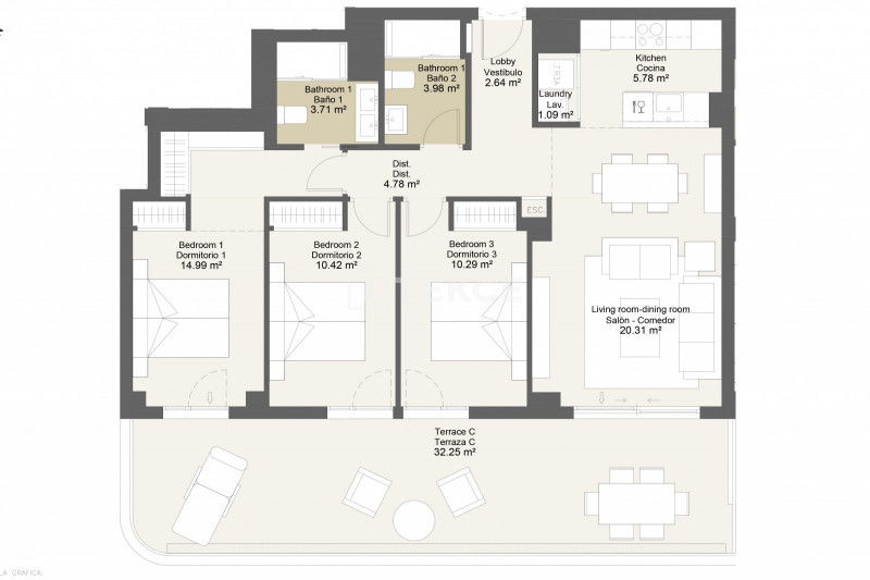The interiors of the apartments are distinguished by their modern, functional, and sophisticated design. Spacious open layouts, abundant natural light, and seamless integration between indoor and outdoor areas create a fresh and inviting atmosphere. Each apartment is thoughtfully planned to maximize comfort, combining clean lines with elegant finishes for a perfect balance of style and practicality.