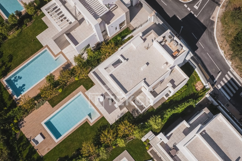 Each villa is meticulously crafted to embrace the breathtaking surroundings while providing the ultimate modern comfort. Featuring generous open-plan layouts of the interiors, expansive glass windows, and premium materials. In addition, these villas create a seamless connection between indoor and outdoor living spaces. Each villa boasts a basement with a sauna, a gym, a game room, and a rooftop solarium.