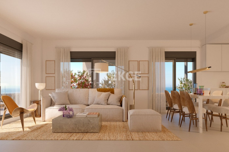 Flats in Torremolinos project stands out for its focus on the functionality of the living room, and open-plan dining room and kitchen. Bright generous interiors merge with the outdoor space through its terraces and oversized windows, to take full advantage of the natural light. Each flat boasts stunning terraces, modern fully equipped kitchens, and spectacular open views.