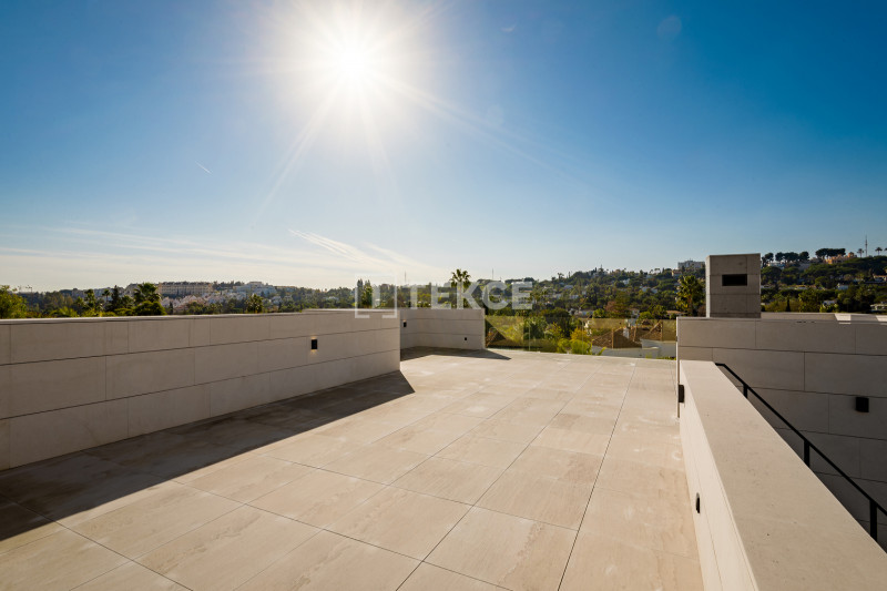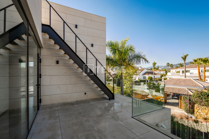 It is a project of only 5 luxury villas situated probably in the best area of Marbella. Each villa sits on its private plot of more than 1.000 sqm offering stunning views overlooking the Mediterranean and the mountains. Each house will have a private fully landscaped garden with an automatic irrigation system, an outdoor pool with a sundeck, an outdoor dining area, and a chill-out lounge by the pool with a wooden bench and a fireplace. Among exterior features, there will be also a built-in jacuzzi on the rooftop solarium.