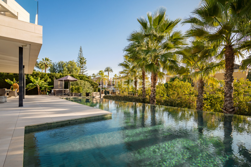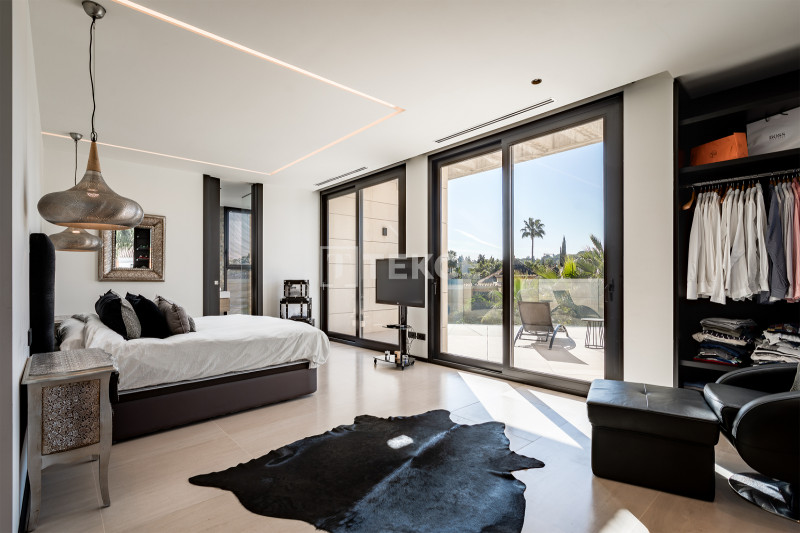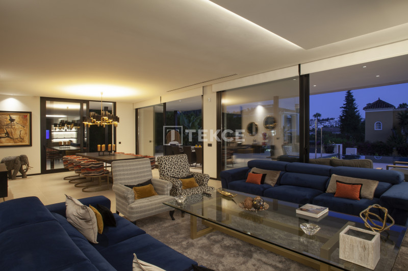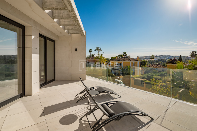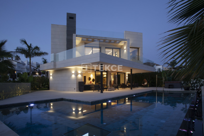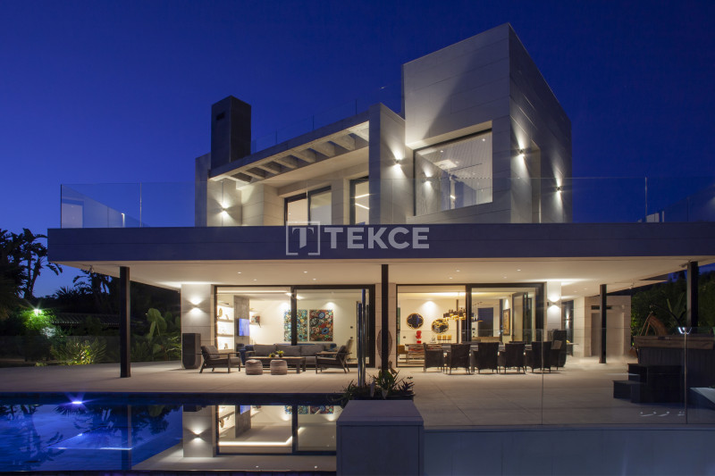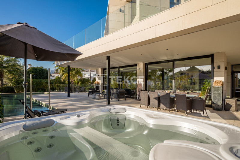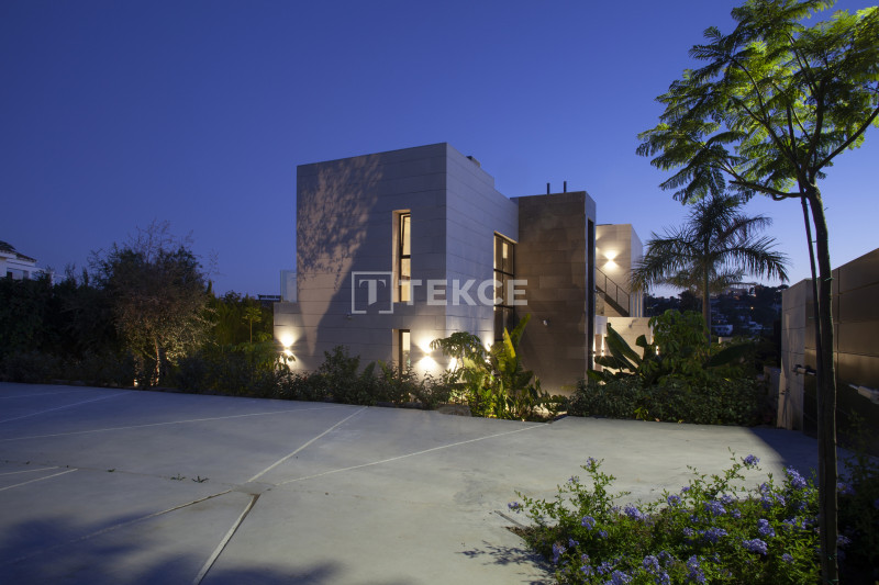 The villas in Marbella for sale combine the finest architectural solutions, stunning design, and the highest quality of materials to create the dream home. The villa’s distinguishing features are stylish open-plan living areas, designer fully fitted kitchens, generous master suites with walk-in dressing rooms, an indoor heated pool, home automation systems, and a private lift. Please note that in the large basement apart from the indoor pool and a double garage there is a possibility to add the optional package at an extra cost of 250.000€: a bar, complete set up for cinema room with furniture, a gym, a sauna, a Turkish bath, and a wine cellar.