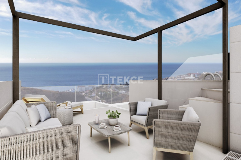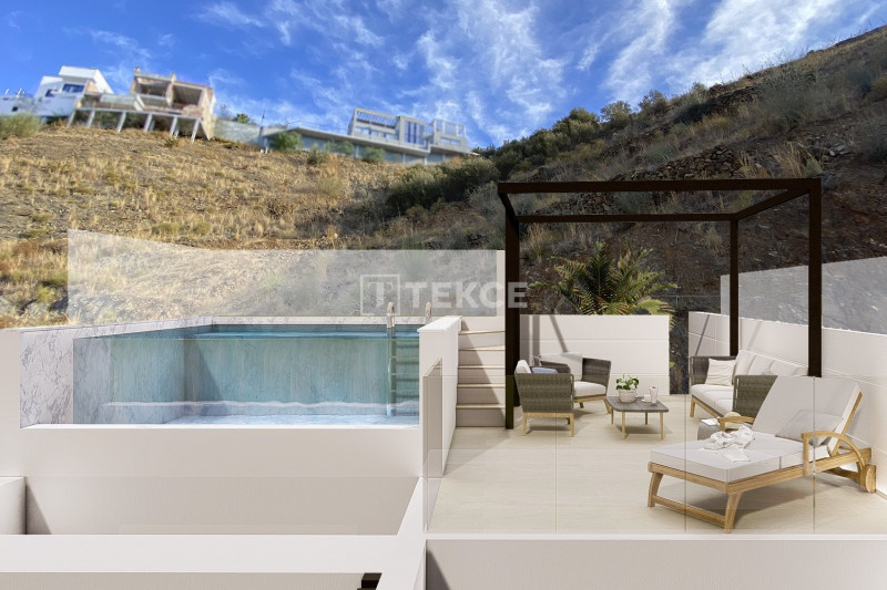 Villas for sale in Mijas are in a complex in El Chaparral, an exclusive residential area in Mijas Costa. The complex is located next to El Chaparral Golf Course and 500 m from the beach and a few minute driving distance from the centers of La Cala de Mijas and Fuengirola. It is possible to easily reach international schools, health centers, and shopping centers. In addition, Malaga Airport is 20 minutes and the center of Malaga is only 30 minutes drive away from the villas.