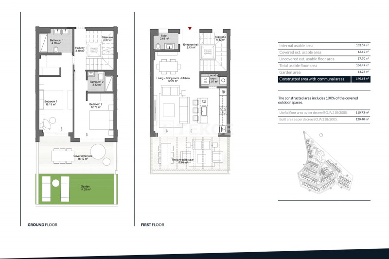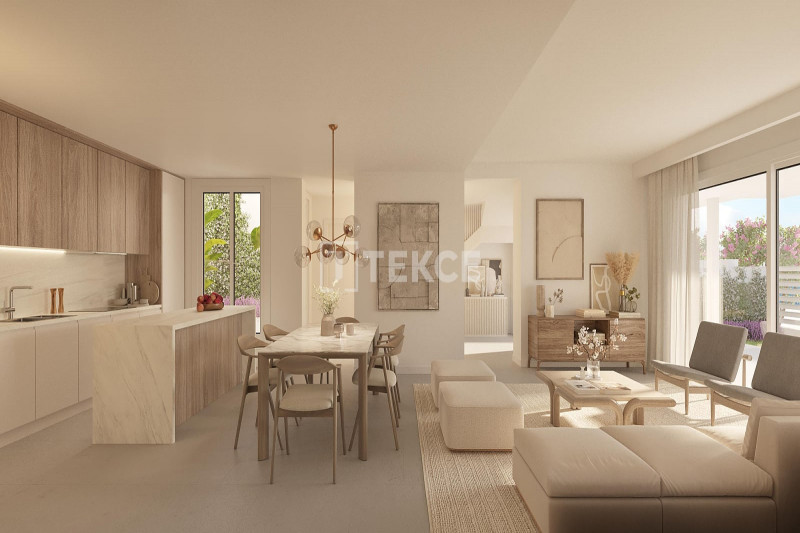It is a project of sophisticated townhouses designed with some traditional Andalusian style touches and lines and blended with nature. Following the trend of the laid-back Mediterranean lifestyle special attention is paid to the equipment of the communal areas in this gated development to make sure everything is on your doorstep. On-site amenities include large swimming pools with a sundeck overlooking the sea and the golf, BBQ, and leisure area, landscaped gardens, a fully equipped gym, a wellness area with a sauna and a Turkish bath, and a Social club with co-working space.