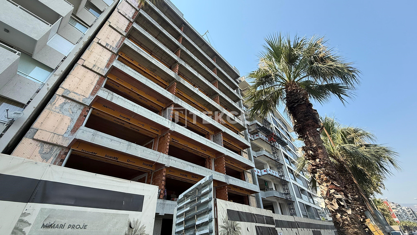 İzmir apartment for sale is located directly on Bostanlı Coast, 50 meters from restaurants, 100 meters from a supermarket, 450 meters from the Karşıyaka Ferry Pier, 1.8 km from an international school, 5.5 km from a shopping mall, 27.5 km from Adnan Menderes Airport, 42 km from Urla’s blue flag beaches, and 57 km from the beaches of Foça.