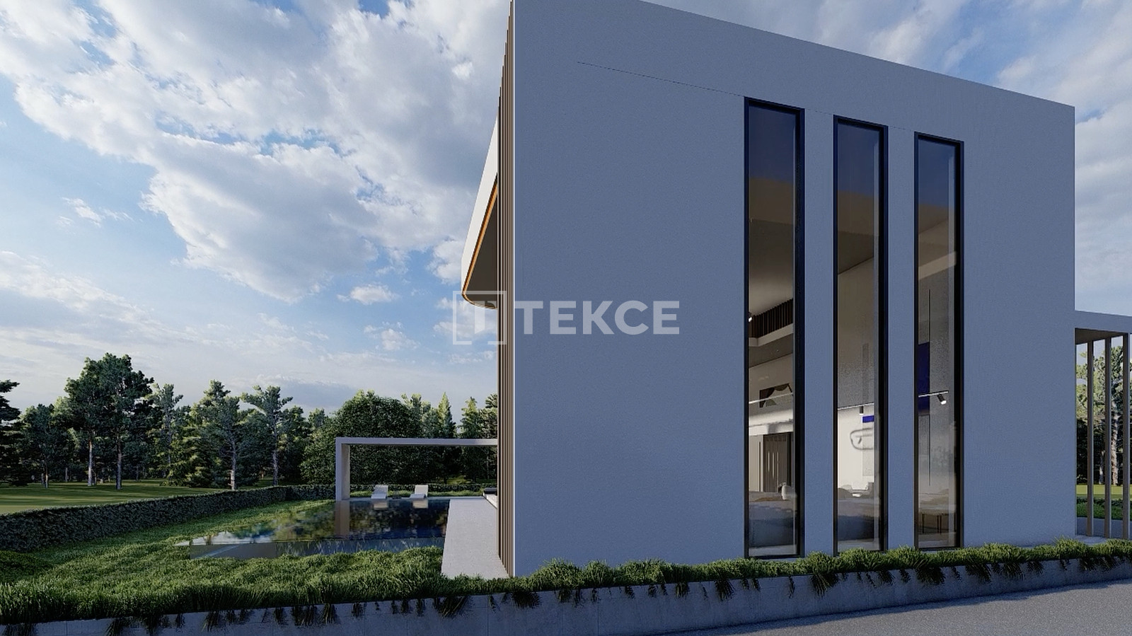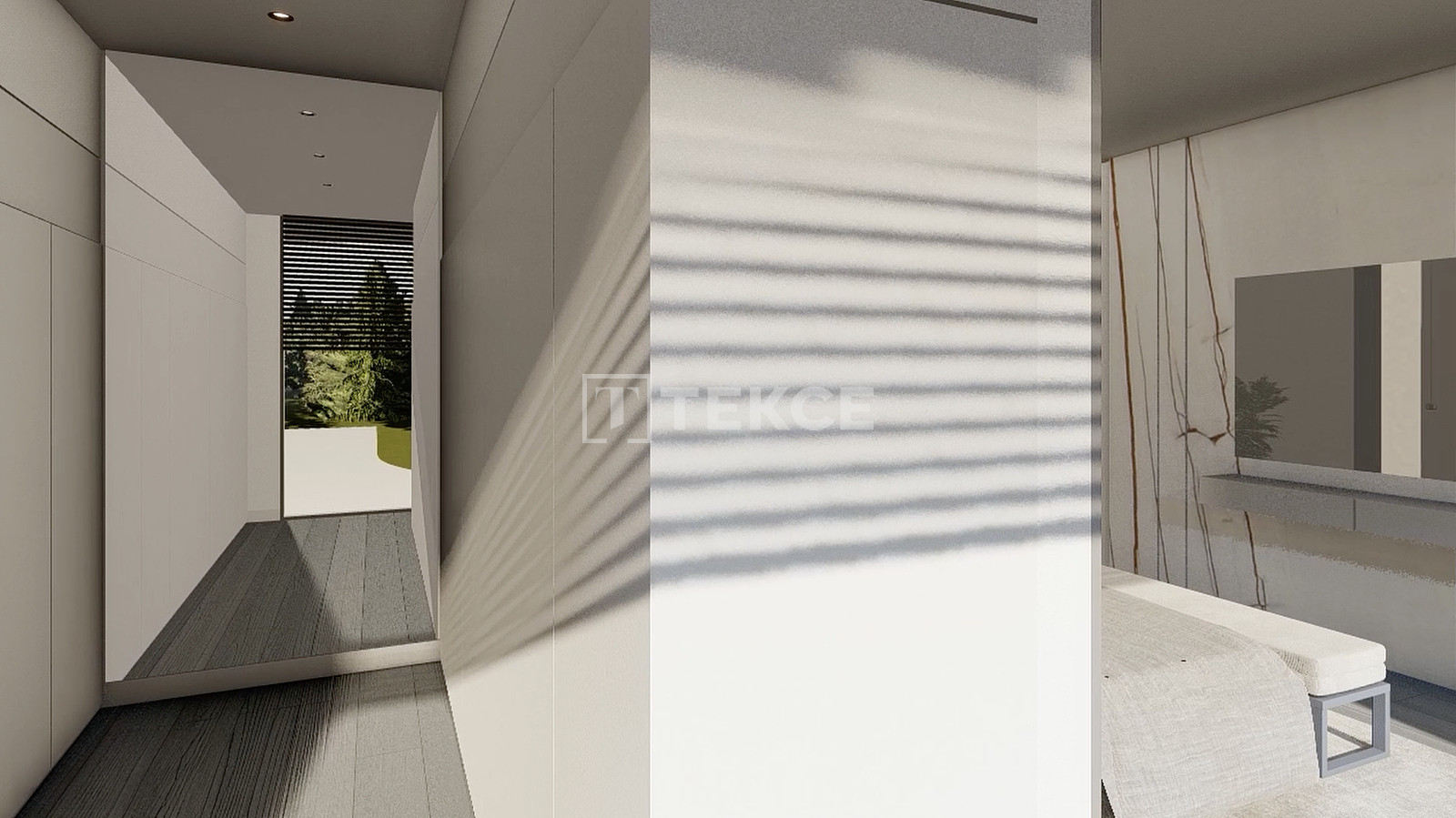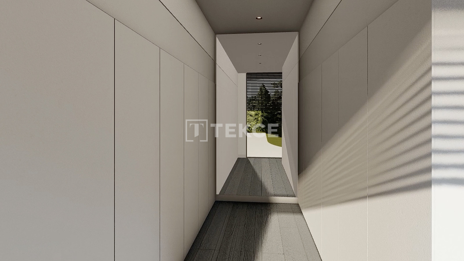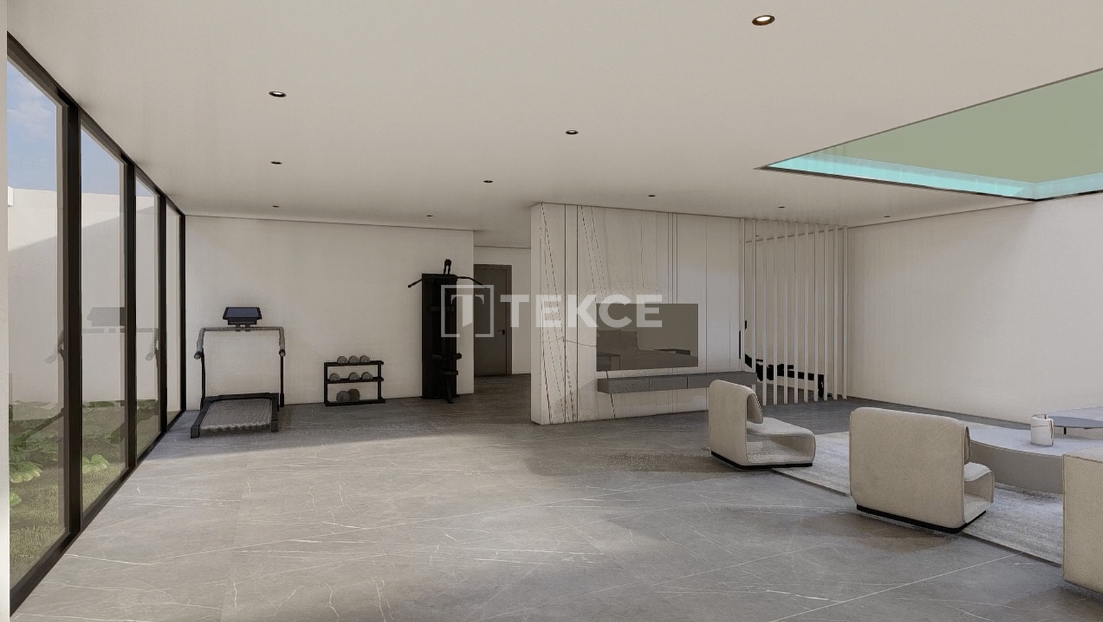 The villa includes bedrooms, en-suite bathrooms, 2 spacious living rooms, an open-plan kitchen, laundry room, cellar, annex, fitness area, cinema area, sauna, Turkish bath, and steam room. It is equipped with a smart home, underfloor heating, and VRF cooling systems. In addition, the villa features high-quality armatures, wooden and ceramic surfaces, lacquer interior doors and kitchen cabinets, electrical blinds, and a ceiling-high steel exterior door.