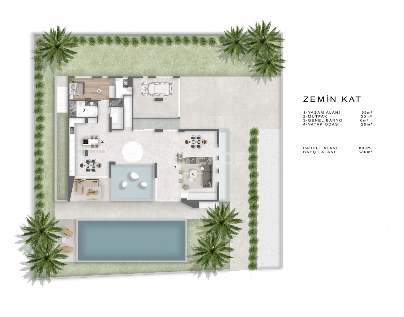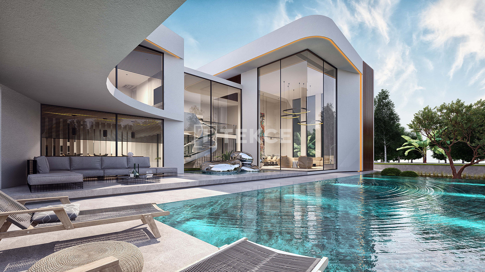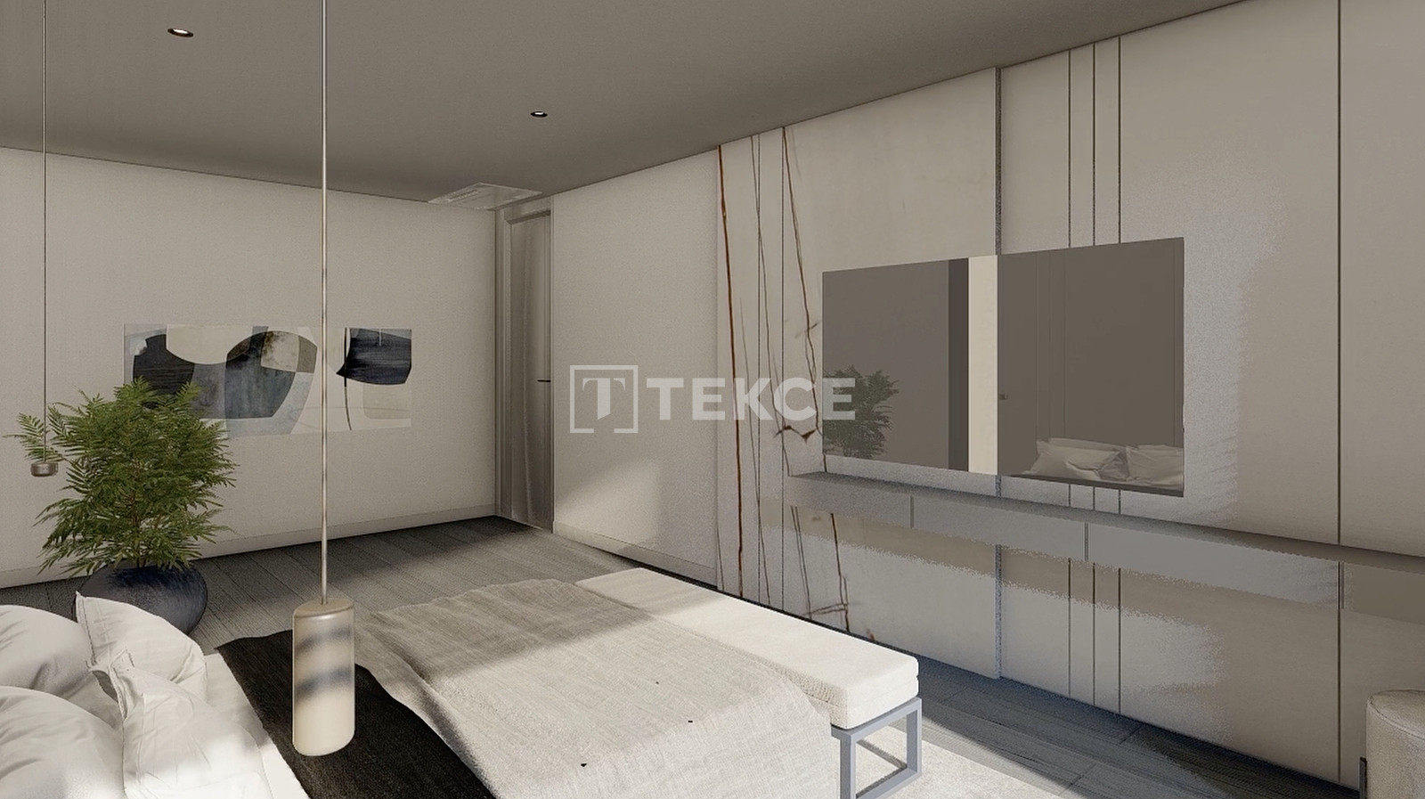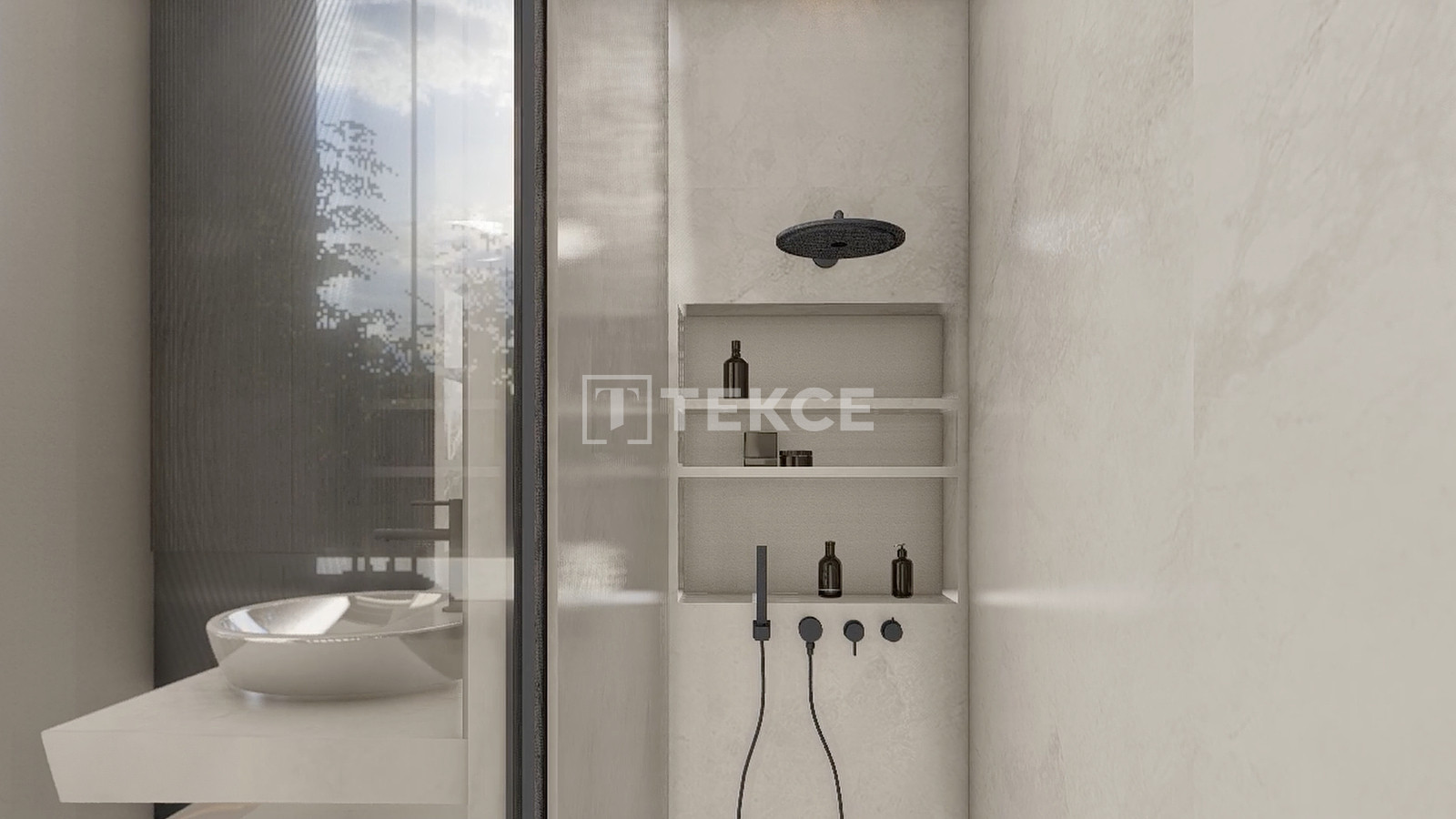 The villa includes bedrooms, en-suite bathrooms, 2 spacious living rooms, an open-plan kitchen, laundry room, cellar, annex, fitness area, cinema area, sauna, Turkish bath, and steam room. It is equipped with a smart home, underfloor heating, and VRF cooling systems. In addition, the villa features high-quality armatures, wooden and ceramic surfaces, lacquer interior doors and kitchen cabinets, electrical blinds, and a ceiling-high steel exterior door.