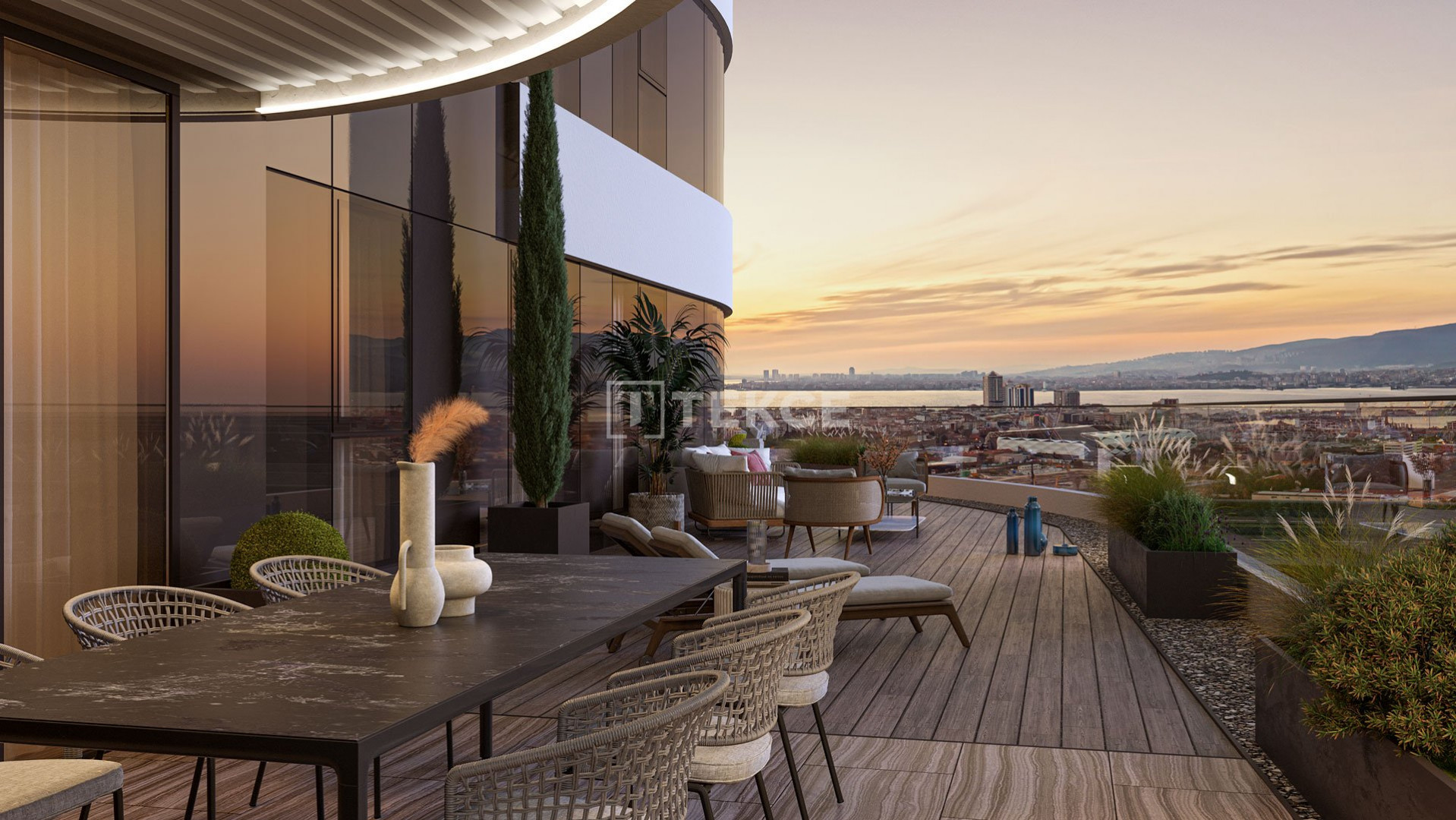 The complex provides a comfortable living space for the residents. The project with the Gulf of İzmir views is enriched with a gm, outdoor swimming pool, children’s swimming pool, Turkish bath, sauna, SPA, playgrounds, a communal garden, sunbathing areas, a social club, yoga garden, dining and meeting rooms, indoor parking, reception, 24/7 security, and security cameras.
