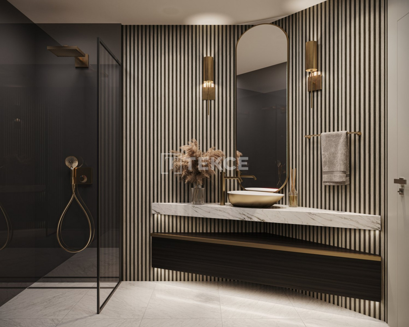 The apartments are equipped with closed-plan kitchens, built-in sets in the kitchens, en-suite bathrooms, shower cabins, laundry rooms, balconies, floor heating and cooling, smart home and central satellite systems, steel exterior doors, PVC windows, and Hilton-style bathrooms.
