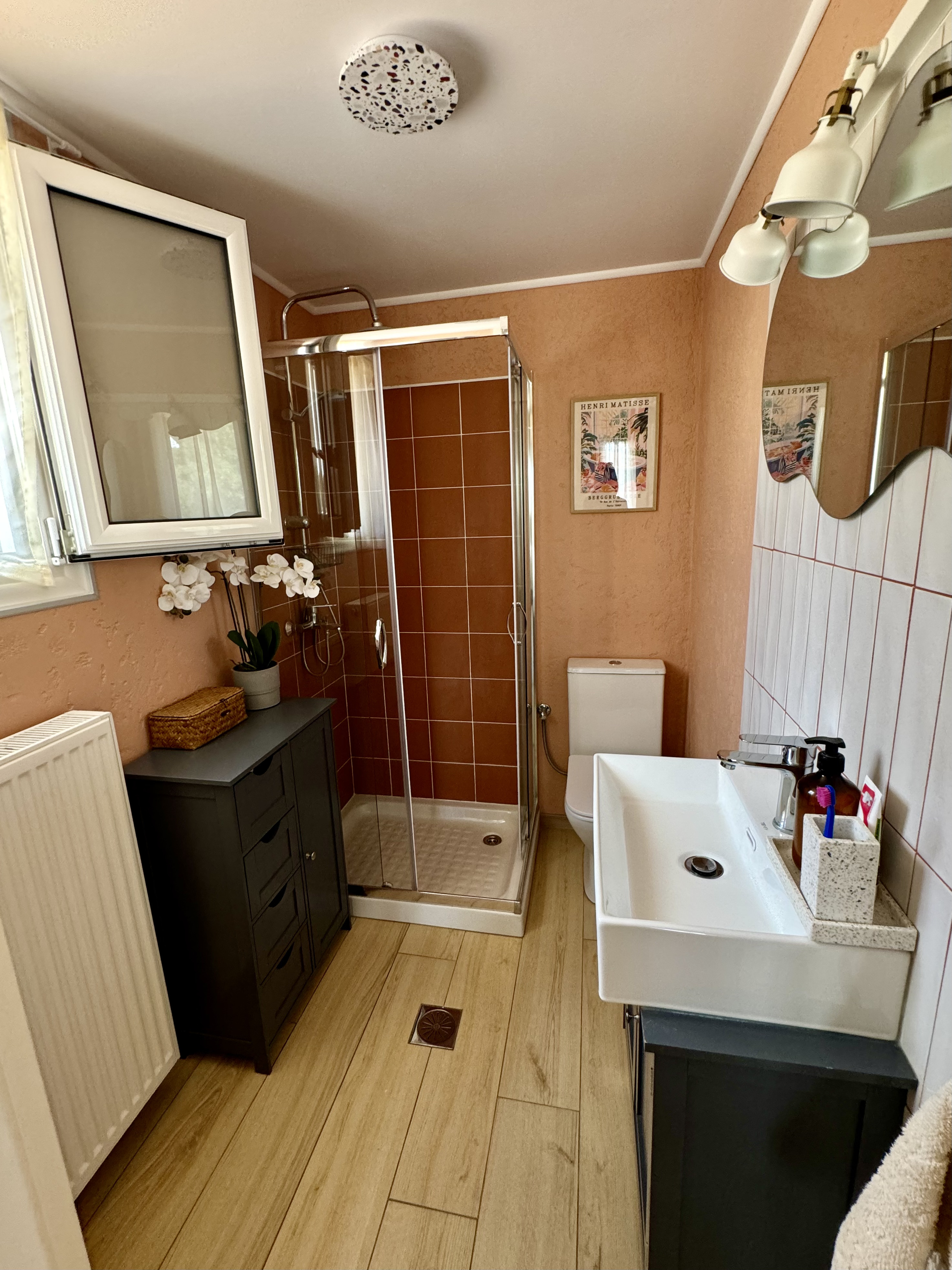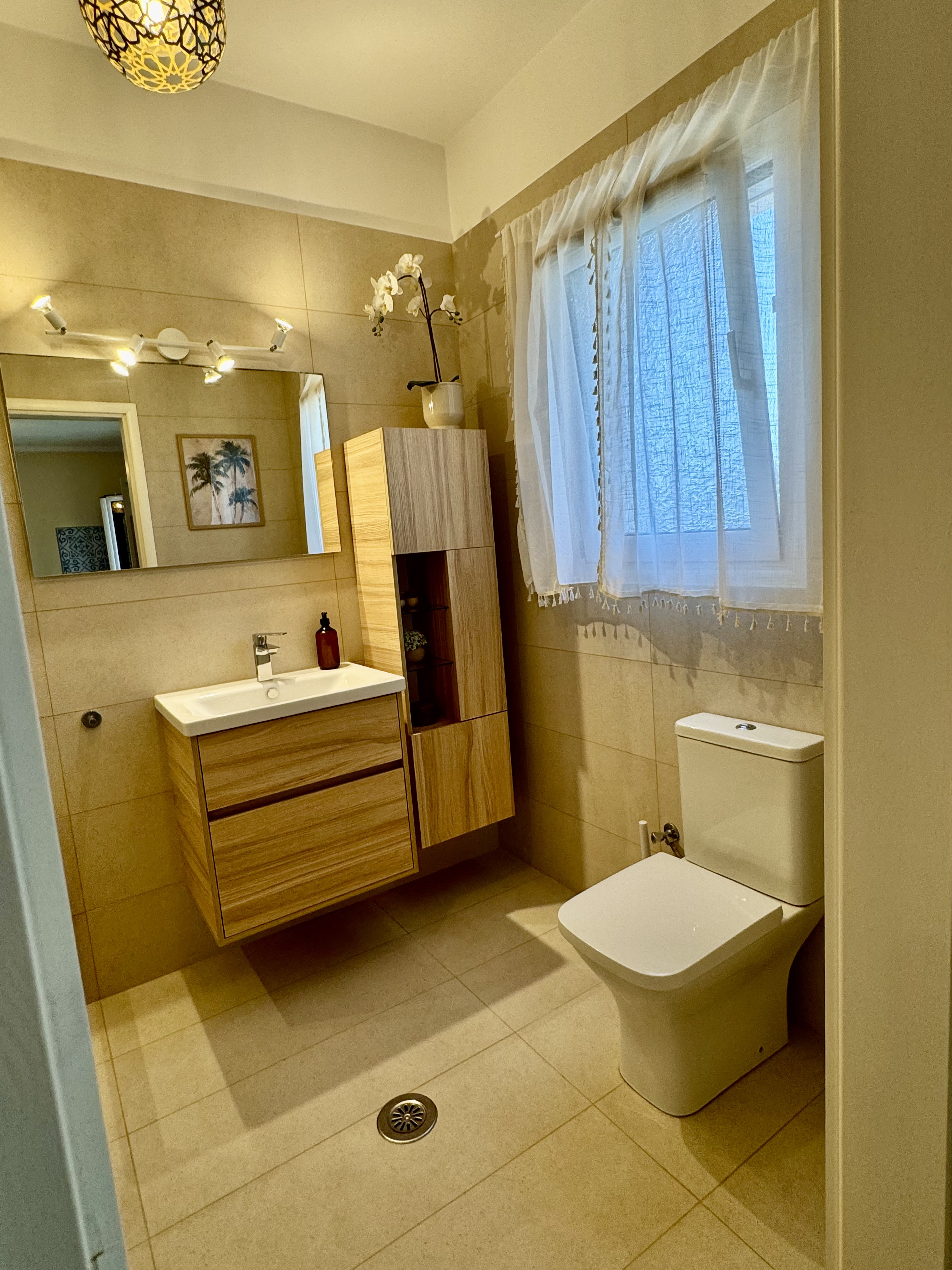 Вилла располагает двумя просторными спальнями, двумя ванными комнатами и залитыми солнцем террасами с прекрасным видом на море.