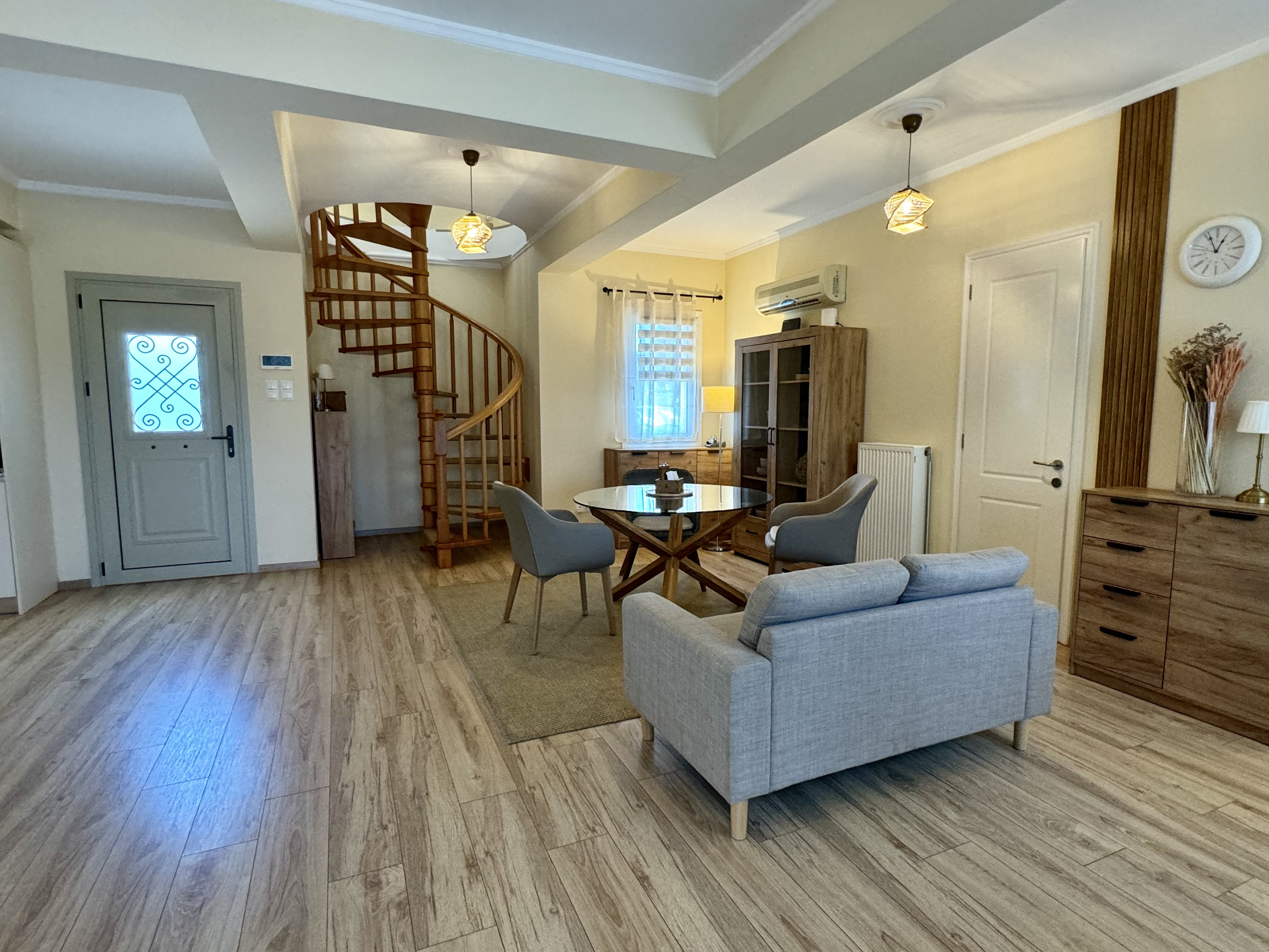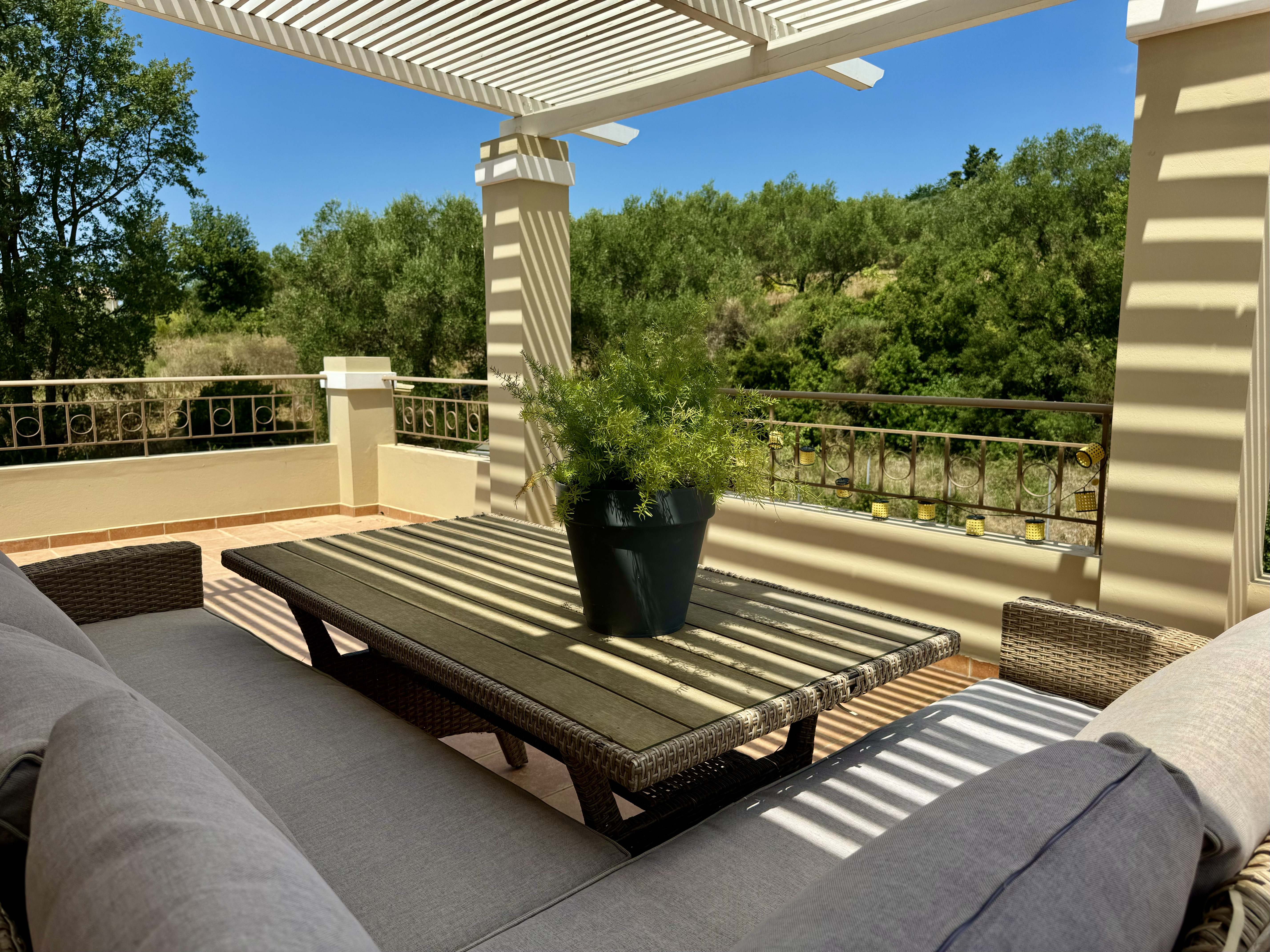 Эта элегантная вилла площадью 107 м² расположена в деревне Пуладес на острове Корфу, в тихом и уединённом месте на участке площадью 2000 м².