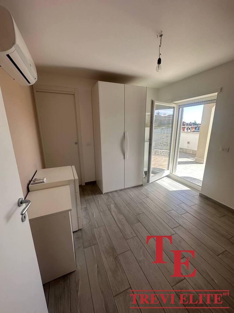 Квартира является частью современного трехэтажного здания, построенного в 2017 году, и состоит из: на втором этаже прихожая-гостиная с кухней, две спальни, ванная комната, ровная терраса; на третьем этаже – комната, санузел и терраса. Имущество включает в себя два открытых парковочных места на первом этаже и кладовка, расположенная в подвале.