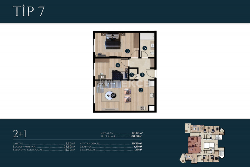 Каждая квартира состоит из большой гостиной с кухней, спальни, ванной комнаты с душевой кабиной. Согласно спецификациям работ, ремонт будет выполнен с использованием материалов отличного качества, таких как паркет, керамогранит, все потолки и стены будут отделаны единым моющимся светлым оттенком. Внутренние распашные двери из белого лакированного дерева, как распашные, так и раздвижные окна будут выполнены из алюминия со всеми характеристиками, гарантирующими термоакустический комфорт. В ванной комнате есть душ вровень с полом, подвесной унитаз и биде с мягким сиденьем, прямоугольная керамическая раковина на столешнице, установленная на деревянной платформе, смесители Grohe и бойлер для производства горячей воды для ванной комнаты и мини-кухни. Летняя и зимняя канальная система кондиционирования воздуха во всех комнатах и система осушения теплового насоса также оснащены концевыми элементами, состоящими из фанкойлов, расположенных в спальне и гостиной. По желанию есть возможность приобретения уже меблированной недвижимости.