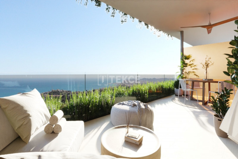Грамотно спроектированные квартиры выполнены из экологичных материалов высочайшего качества. В гостиной и спальнях большие окна, что позволяет использовать естественное освещение. Просторные открытые террасы служат продолжением внутренних помещений. Особое внимание уделено максимальной приватности в окружении естественной растительности, чтобы в каждой квартире можно было насладиться и расслабиться в собственном джакузи, любуясь видом на Средиземное море.