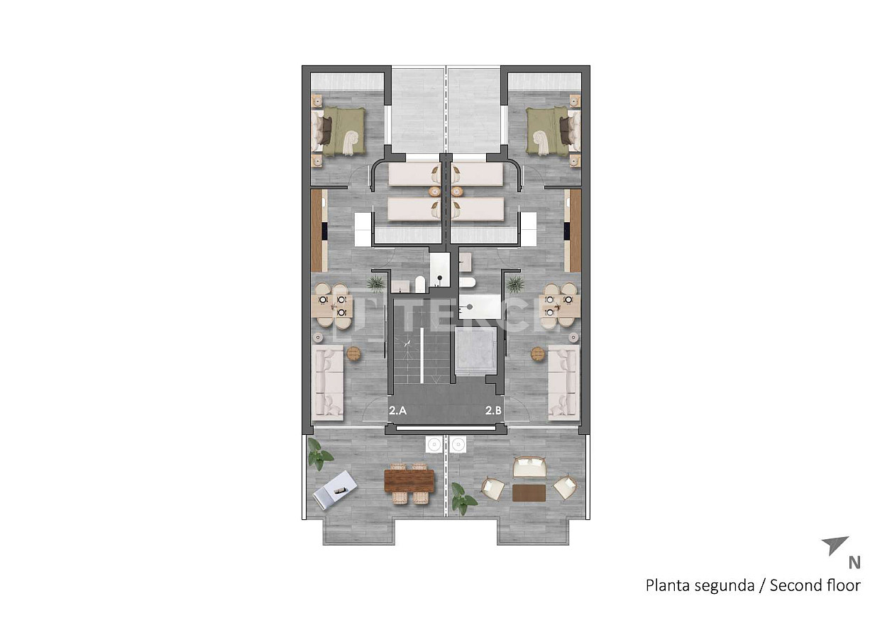 Квартиры сочетают элегантный дизайн и средиземноморский стиль. Интерьер включает просторные жилые помещения открытой планировки, наполненные естественным светом, современную кухню с отделкой премиум-класса и две просторные спальни с встроенными шкафами. Большие раздвижные стеклянные двери соединяют жилые зоны с собственными террасами, создавая гармоничное сочетание внутреннего и внешнего пространства — идеально для жизни на побережье.