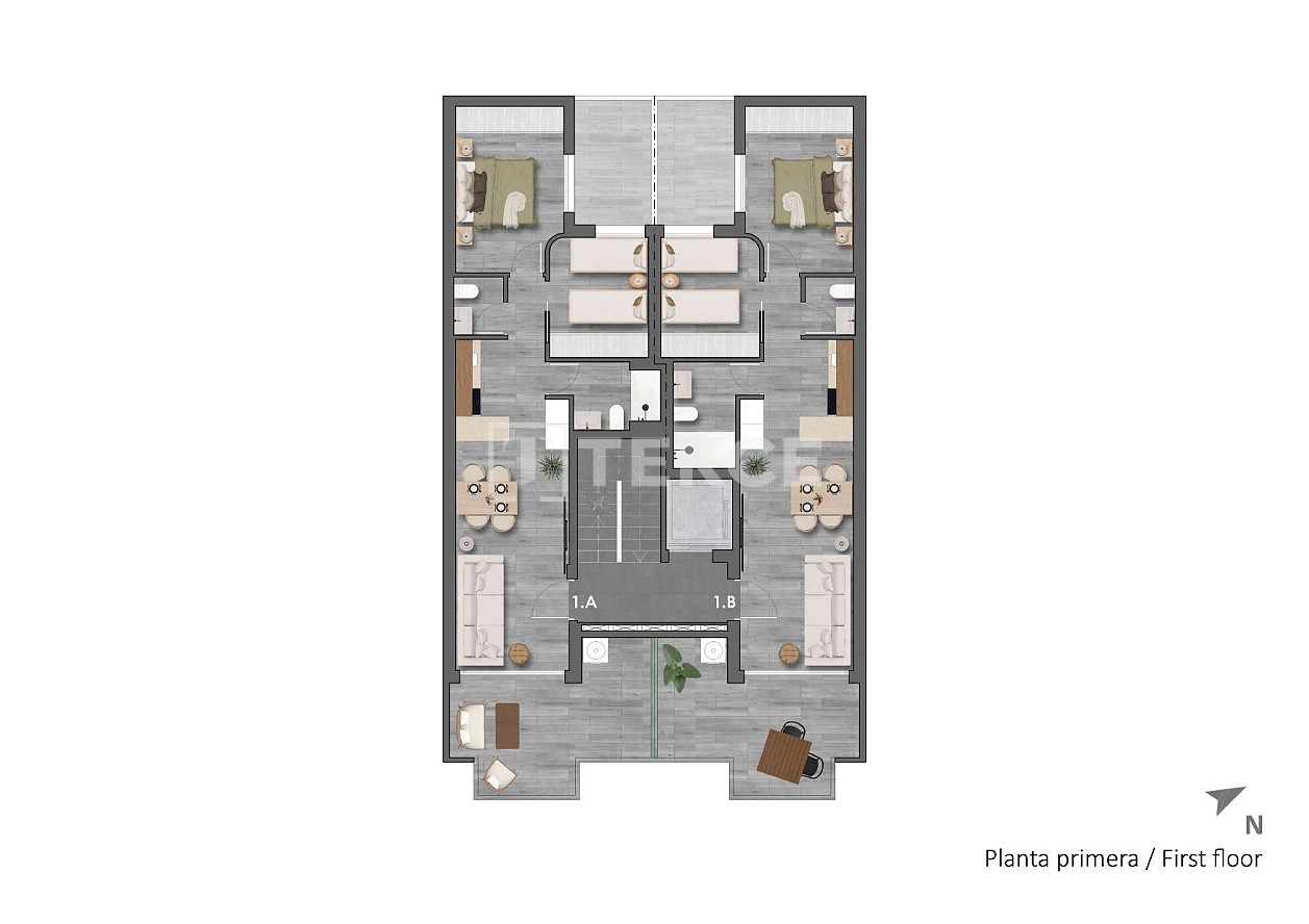 Квартиры сочетают элегантный дизайн и средиземноморский стиль. Интерьер включает просторные жилые помещения открытой планировки, наполненные естественным светом, современную кухню с отделкой премиум-класса и две просторные спальни с встроенными шкафами. Большие раздвижные стеклянные двери соединяют жилые зоны с собственными террасами, создавая гармоничное сочетание внутреннего и внешнего пространства — идеально для жизни на побережье.
