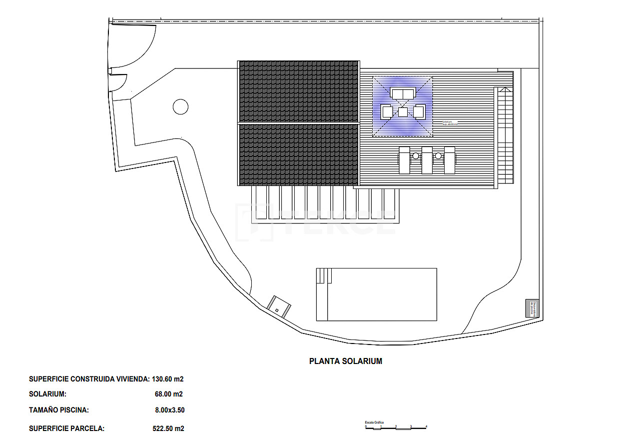 Занимая участок площадью 522,5 м², вилла имеет общую площадь застройки 130,6 м², что позволяет наслаждаться комфортом и элегантностью. Снаружи — частный бассейн (8 x 3 м), ухоженный сад и просторная терраса, которые создают идеальные условия для отдыха и семейных встреч. Солярий площадью 68 м² предлагает захватывающий вид на море, позволяя наслаждаться спокойным отдыхом под средиземноморским солнцем.