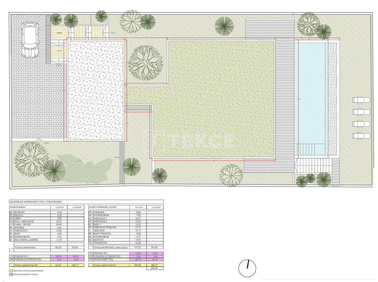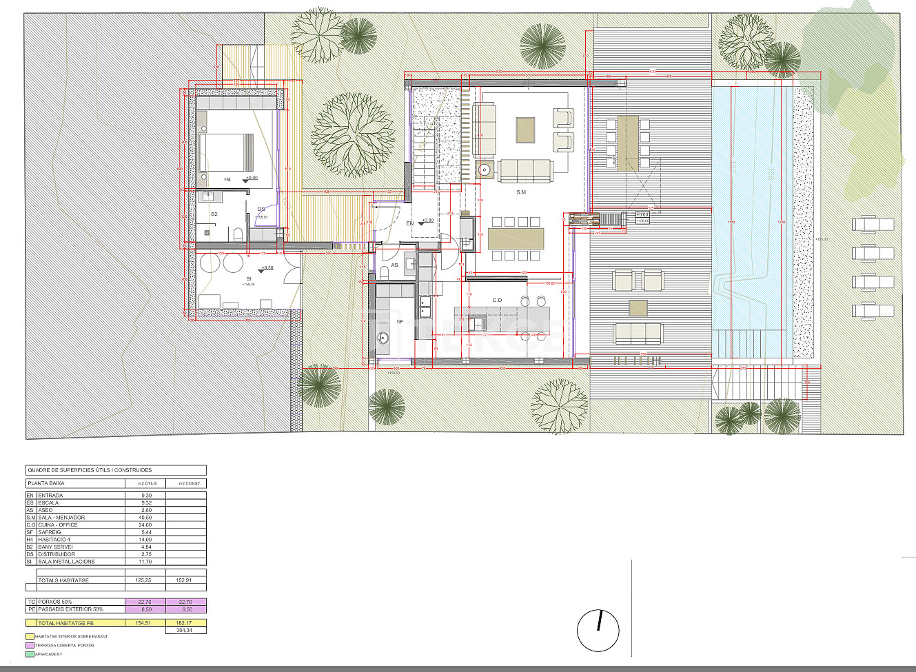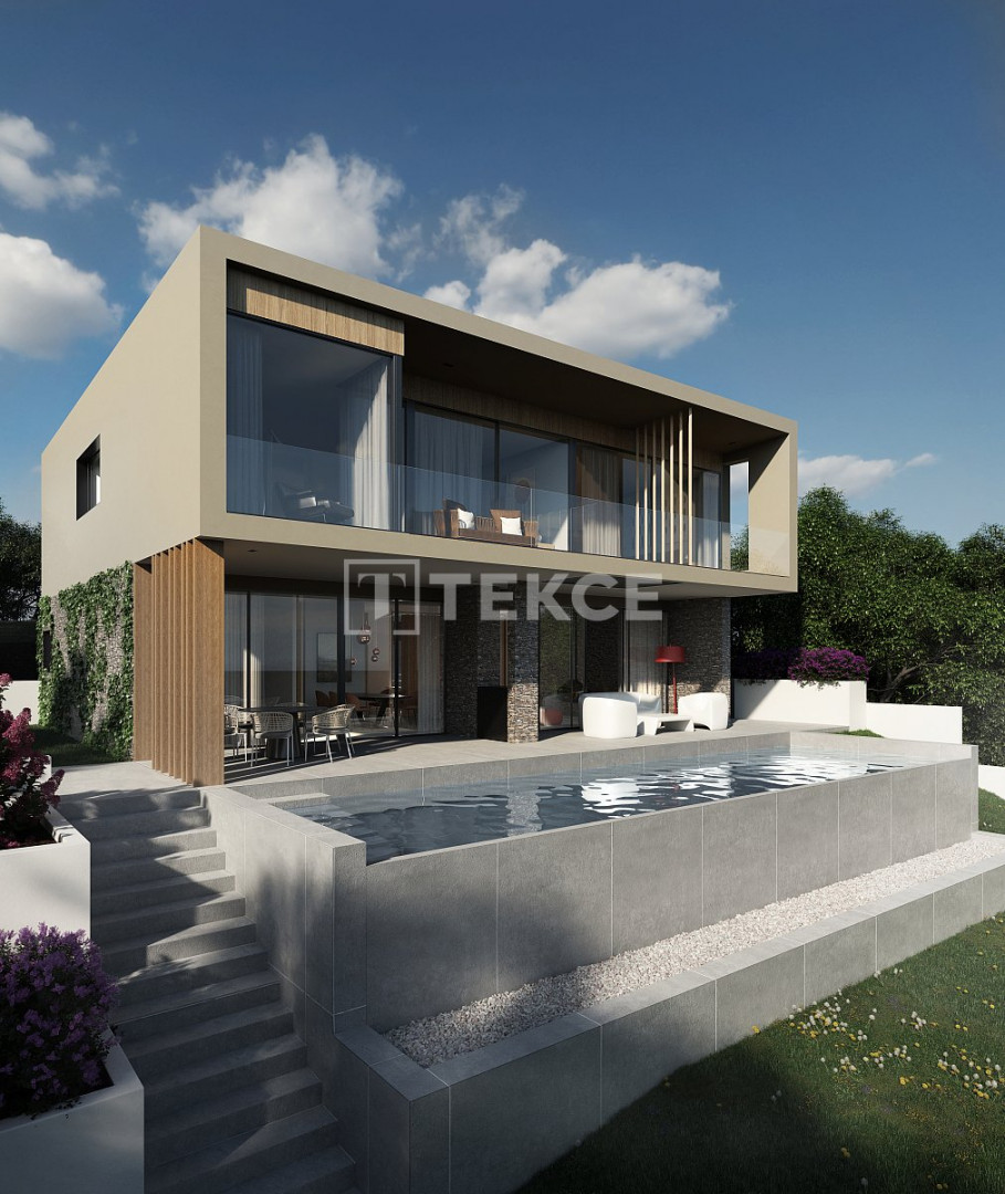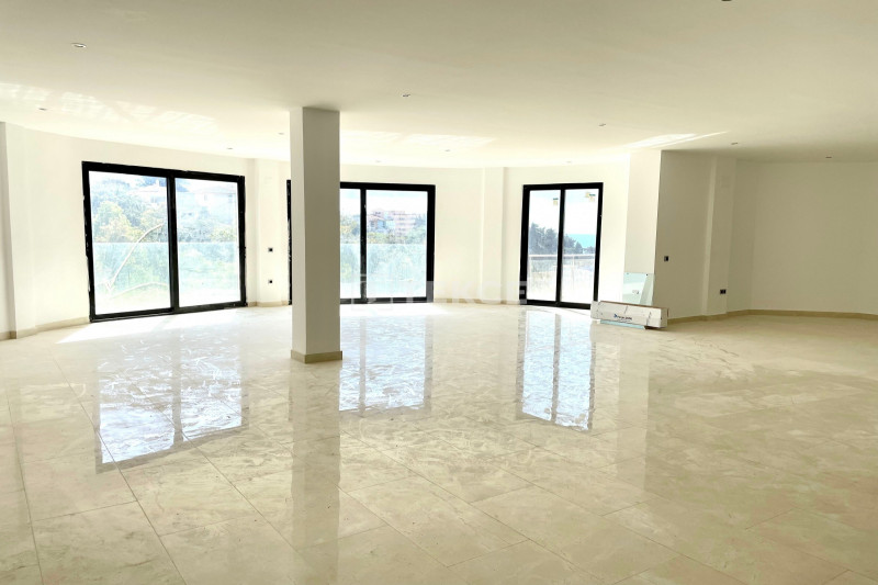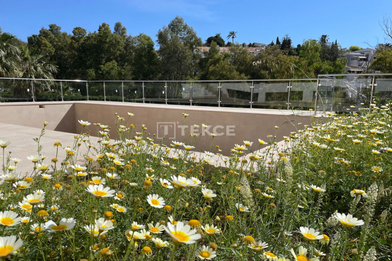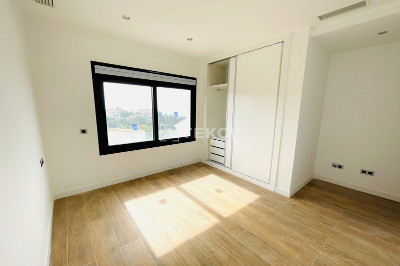 Внутри виллы — светлое жилое пространство с открытой планировкой, плавно переходящее в открытые зоны, создавая гармонию между внутренней и внешней жизнью. Современная кухня оснащена высококачественной техникой и имеет элегантную отделку. Вилла оборудована эффективной системой аэротермального и лучистого потолочного отопления и охлаждения, обеспечивающей комфорт круглый год. Система климат-контроля Zehnder позволяет контролировать температуру и влажность в реальном времени, поддерживая идеальный микроклимат в помещении. В интерьере также — паркет, высококачественные окна с алюминиевыми рамами и изысканные архитектурные детали.