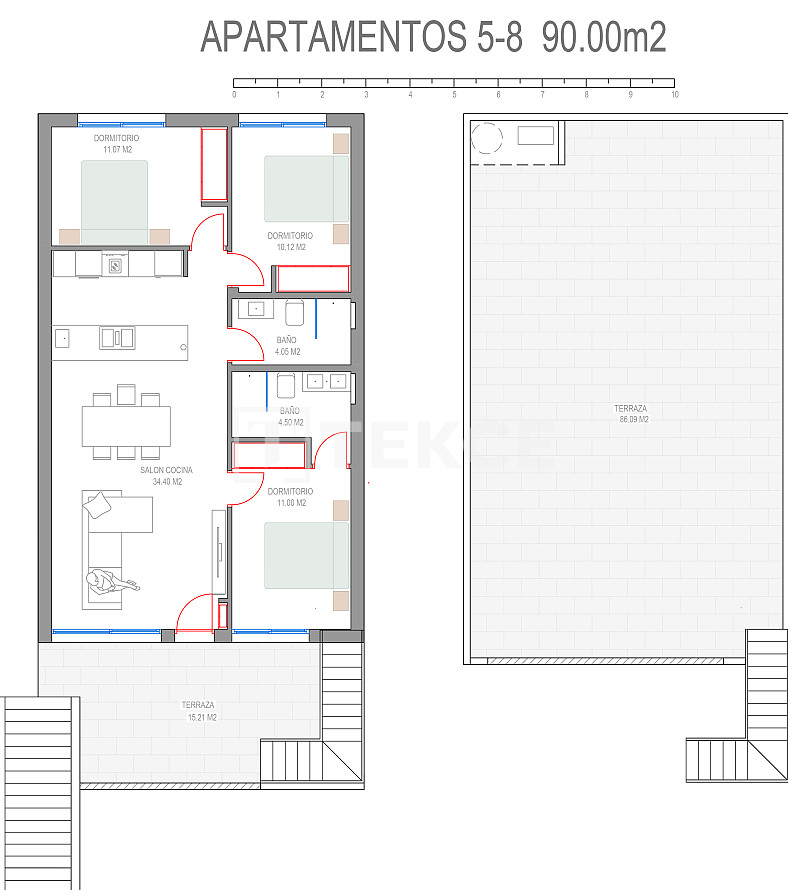 Жилой комплекс состоит из 8 квартир, расположенных на верхних и нижних этажах, вокруг благоустроенных общественных зон и общего бассейна. Просторные открытые пространства максимально используют естественное освещение, и каждая квартира имеет собственный сад, террасу и солярий. Для удобства и безопасности жильцов предусмотрена общая парковка.