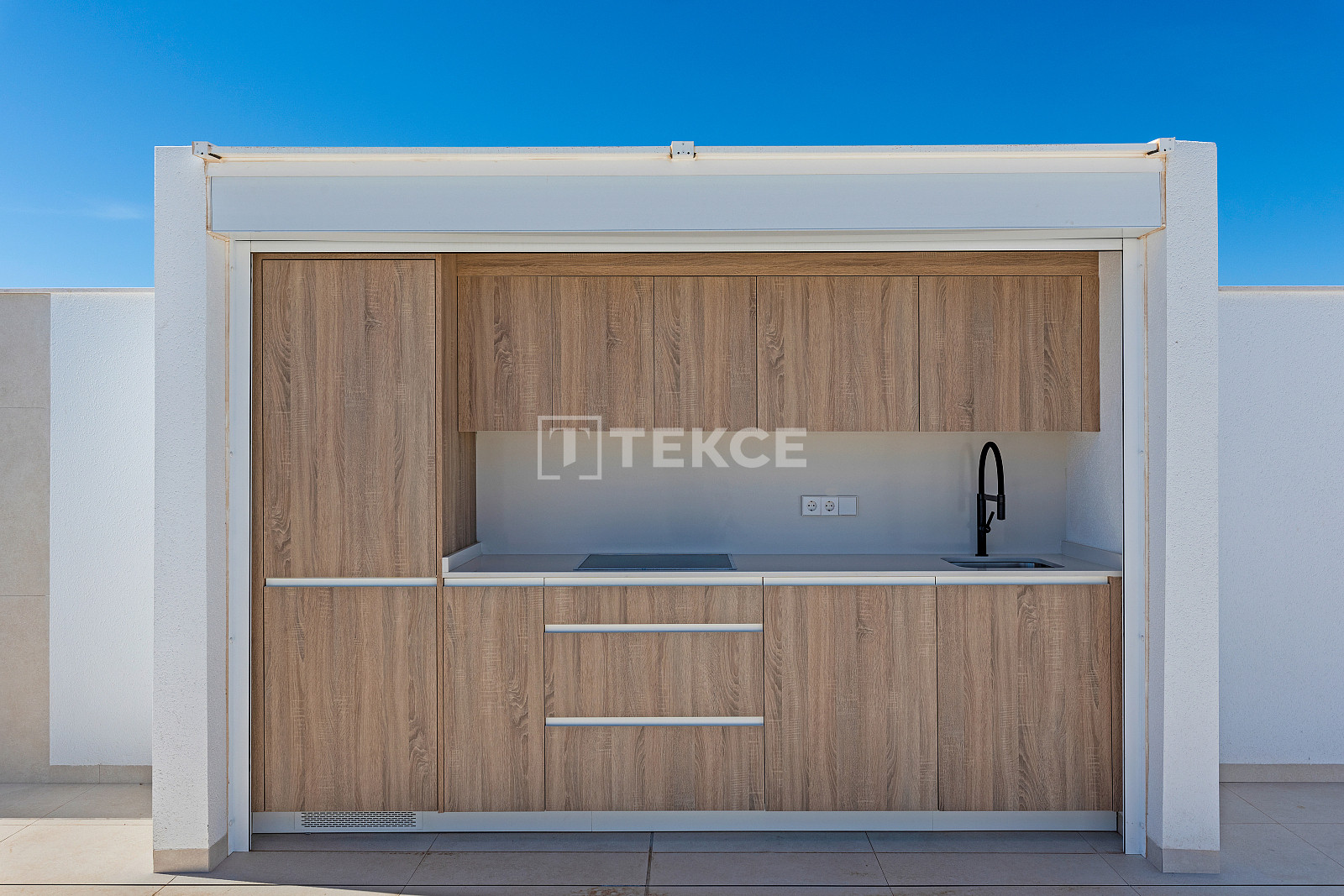 Квартиры имеют современный и функциональный интерьер, включая 3 спальни и 2 ванные комнаты. В отделке использованы качественные керамогранитные покрытия, кондиционеры, встроенные шкафы и полностью оборудованные кухни. Светлые и уютные жилые зоны открытой планировки создают комфортное пространство как для отдыха, так и для повседневной жизни.