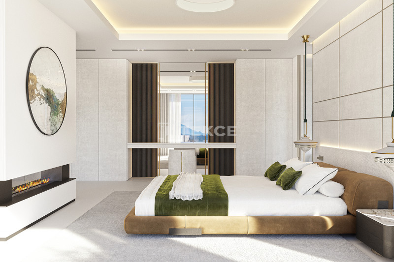 Вилла имеет впечатляющую площадь застройки – 1742 м². Ее здание спроектировано как последовательная цепь соединенных между собой блоков, спускающихся по склону. Вилла включает в себя просторные жилые зоны с 8 спальнями и 9 ванными комнатами, большие террасы и оздоровительный комплекс с крытым подогреваемым бассейном, сауной, тренажерным залом, кинозалом, библиотекой и прачечной. Кроме того, на территории находится гостевой дом с 2 спальнями и отдельным входом. Вилла построена с учетом экологичности: для ее энергоснабжения используются возобновляемые источники энергии, включая геотермальную систему, солнечные панели и батареи, что делает дом полностью энергетически самодостаточным.