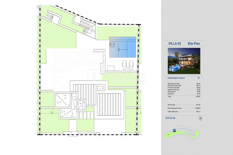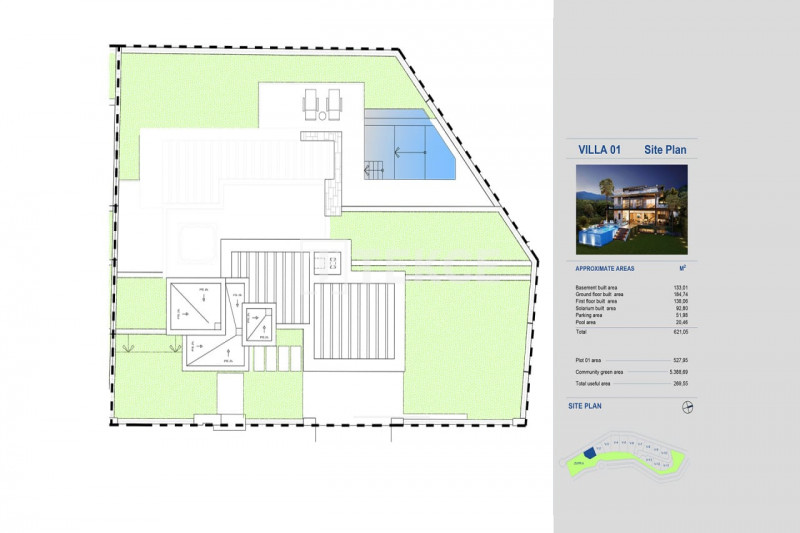 Виллы занимают четыре уровня, соединенные лифтом, и включают солярий на крыше, а также подвальные помещения, предназначенные для гаража и прачечной. Светлые жилые пространства создают ощущение простора, а кухня открытой планировки плавно переходит в столовую. Виллы состоят из 4 спален, 3 ванных комнат и 2 гостевых туалетов. В каждой спальне предусмотрены гардеробные или вместительные шкафы, а в некоторых апартаментах есть прямой выход на террасы или ванные комнаты.