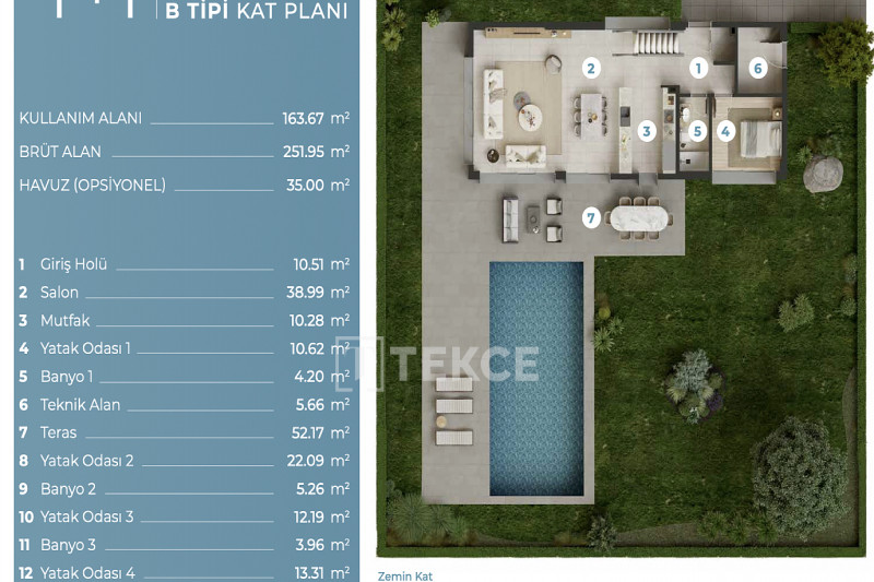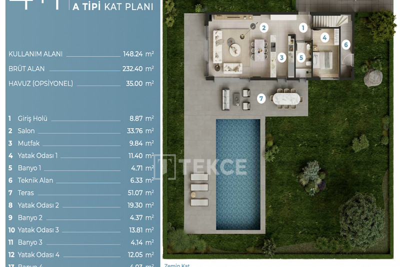 Проект занимает участок площадью 2653 м² и находится в стадии строительства. Он состоит из 5 отдельных домов. Каждая вилла оснащена собственным бассейном, крытой парковкой на 2 машины, сауной, зоной барбекю, камином, тренажерным залом и кинозалом.