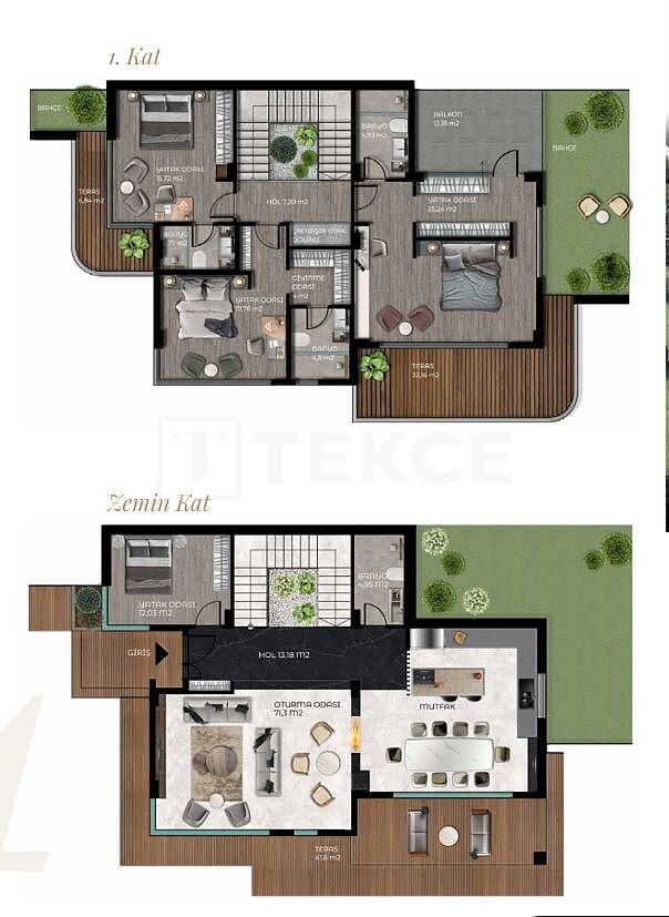 Эти полностью отдельные дома расположены в районе Бекташ в Аланье, Анталия. Бекташ ценится за развитую инфраструктуру, социальные удобства и потрясающие виды на море и город, что делает район особенно популярным среди жителей.