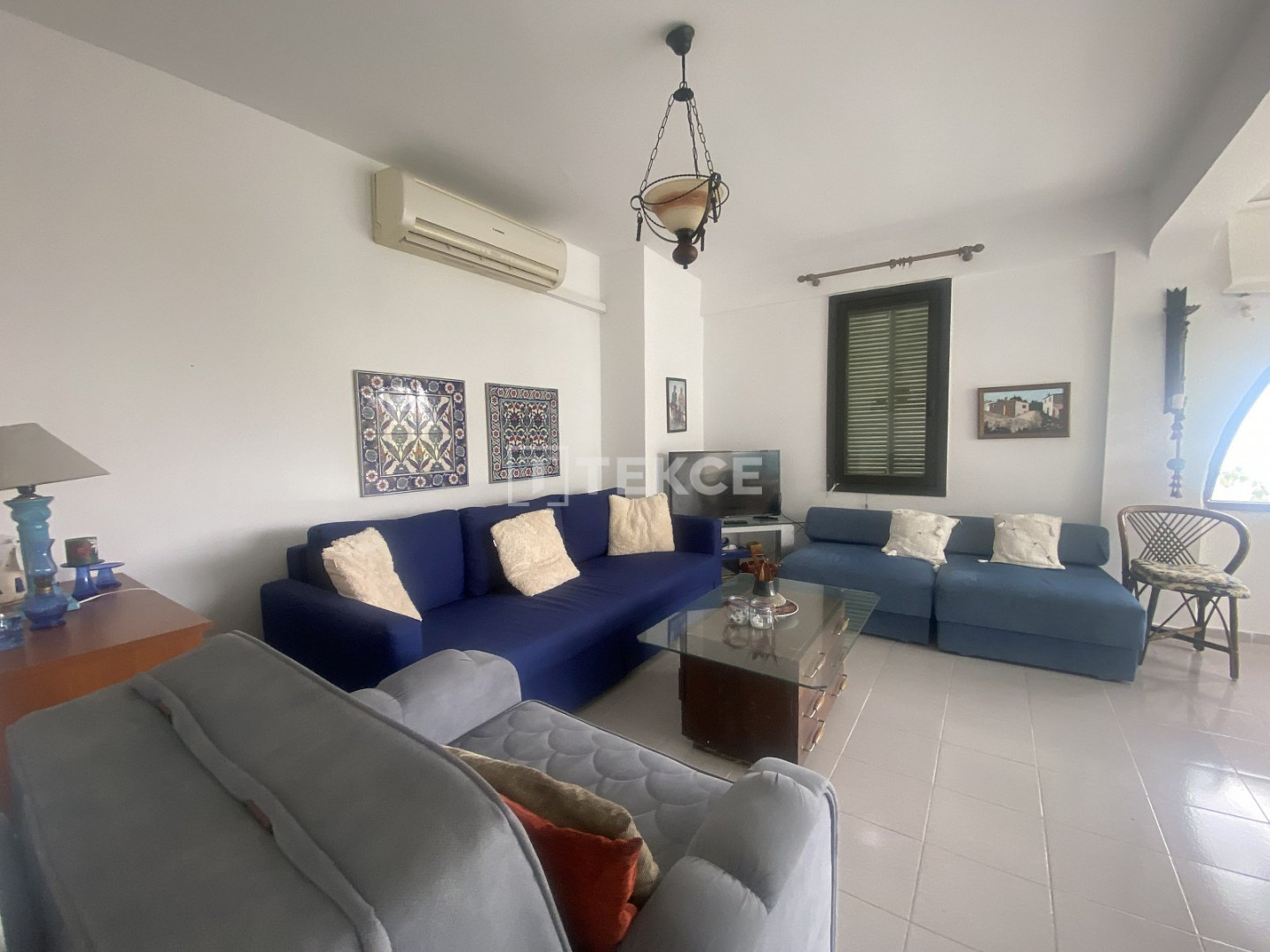 Вилла на продажу в Бодруме находится всего в 4,5 км от пристани Тургутрейс, в 5 км от центра района, в 24 км от государственной больницы Бодрума, в 25 км от центра города и в 58 км от аэропорта Милас–Бодрум.