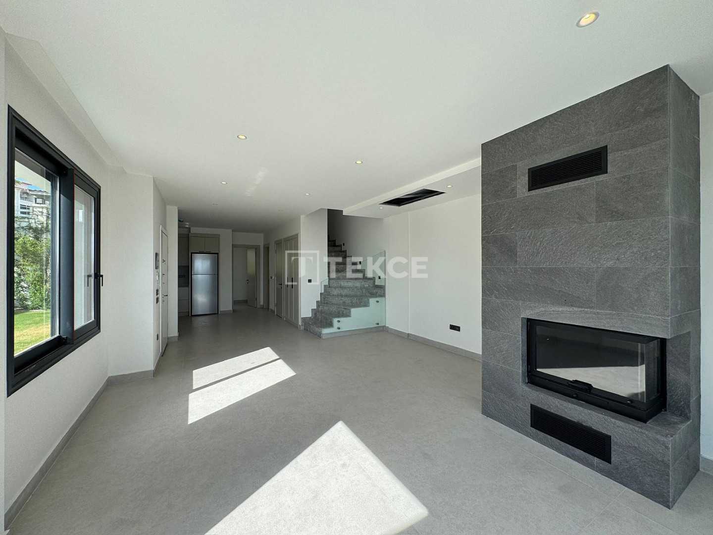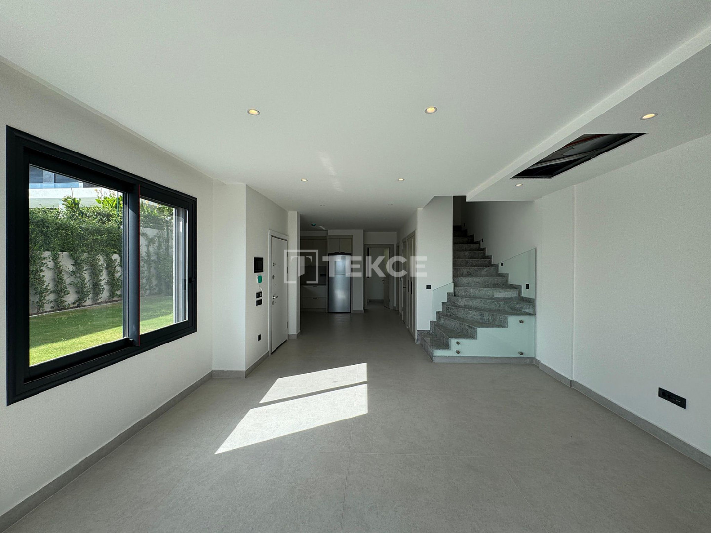 Внутренние особенности домов включают просторную кухню открытой планировки, балкон, террасу у бассейна, главную ванную комнату, кладовую, место для хранения вещей и душевую кабину. Дома оснащены стальной входной дверью, окнами с алюминиевым профилем, а на полу — ламинат и керамическая плитка. Лакированные кухонные шкафы и межкомнатные двери, система домофона и кондиционирование обеспечат комфорт проживания в любое время года.