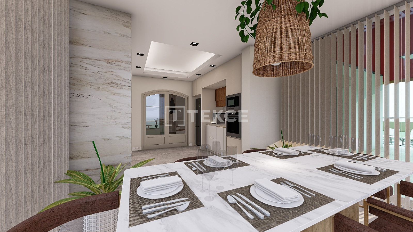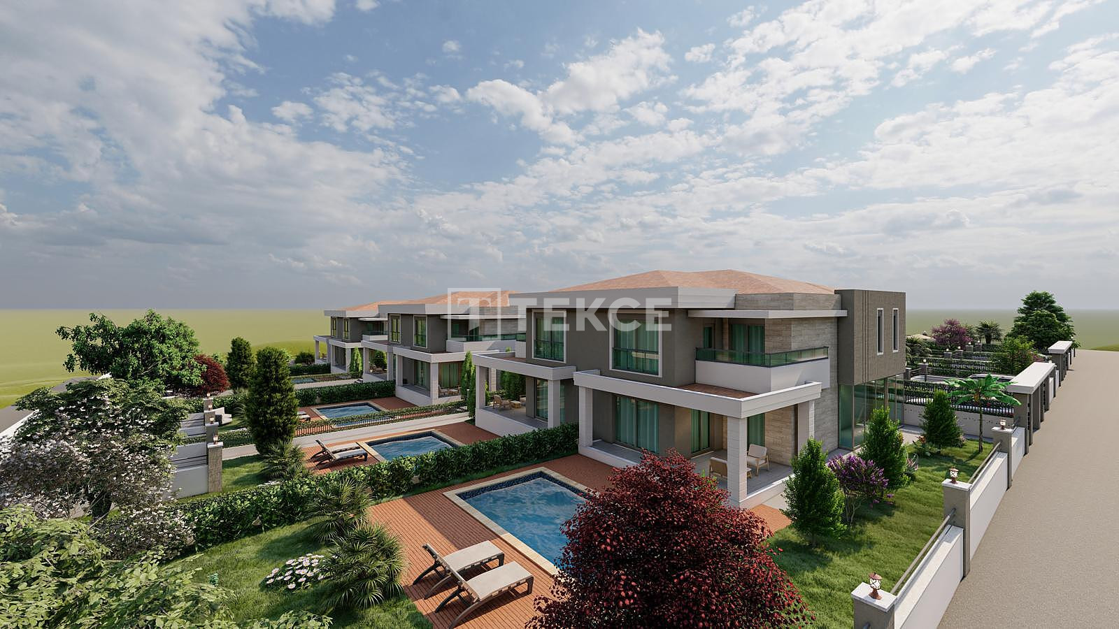 Проект включает виллы с 4 и 5 спальнями, собственными бассейнами и садами. Площадь участков вилл варьируется от 300 до 340 м², а общая жилая площадь составляет от 195 до 220 м². В каждой вилле предусмотрены гостиная, кухня открытой планировки, три ванные комнаты и терраса. Просторные планировки и современный дизайн фасада делают эти виллы не только удобными для проживания, но и привлекательными для инвесторов.