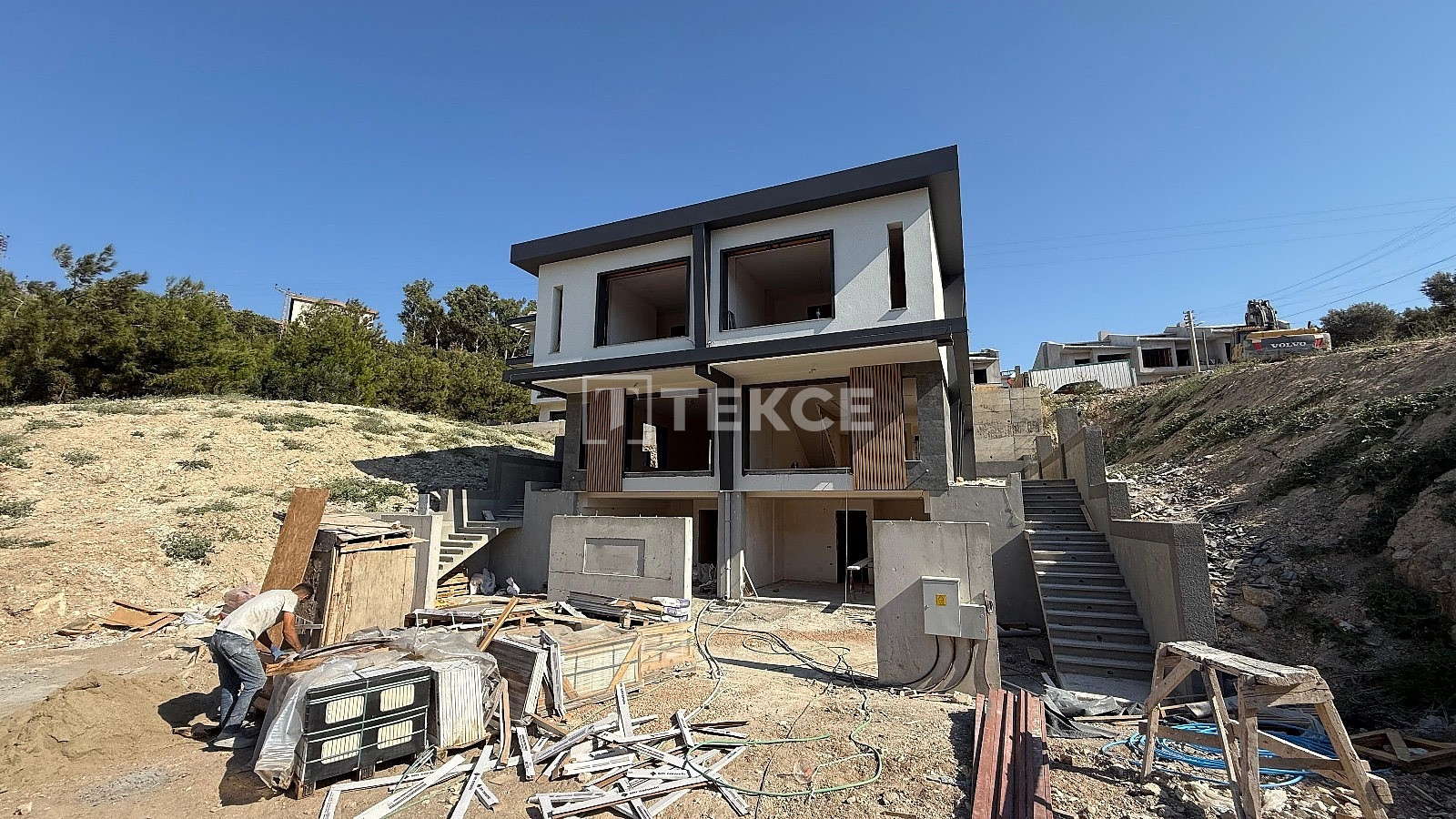 Эти виллы на продажу в Измире, Урла, находятся в 100 метрах от частной школы, в 650 метрах от пляжей, отмеченных Голубым флагом, в 750 метрах от супермаркета, в 1,3 км от знаменитых рыбных ресторанов Измира, моря и пристани для яхт, в 8 км от центра Урлы и в 40 км от аэропорта имени Аднана Мендереса.