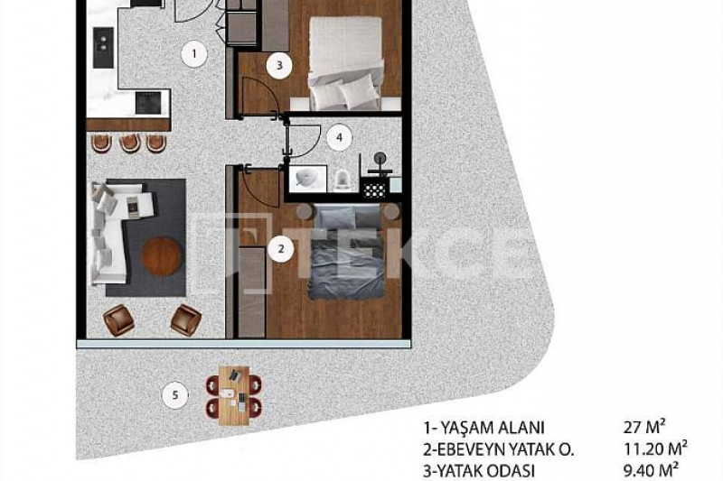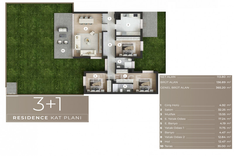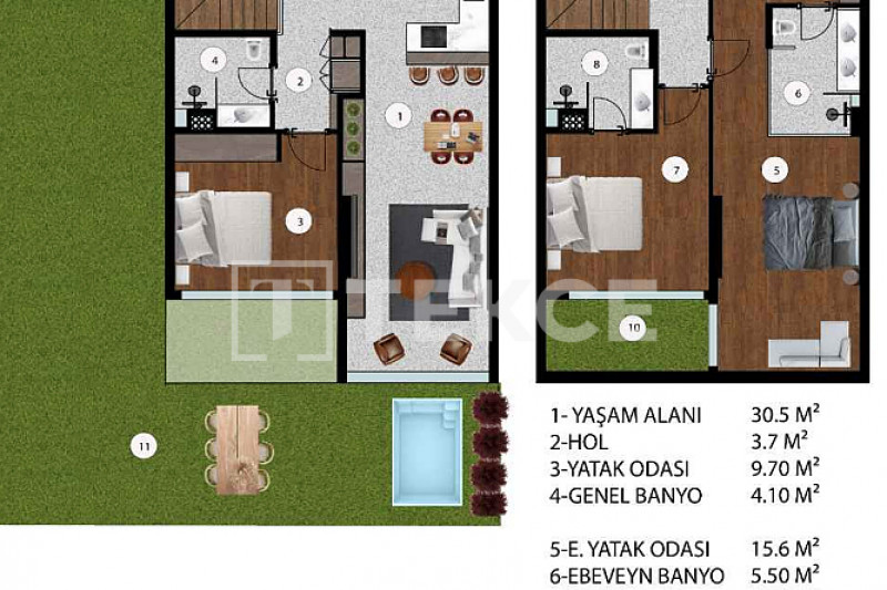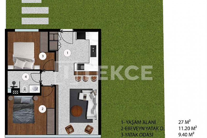 Жилой комплекс расположен на участке площадью 15 650 м² и включает 8 блоков и 132 квартиры в общей сложности. В продаже есть варианты с 1, 2, 2,5 и 3 спальнями, с просторными балконами или террасами на первом этаже с выходом в сад. В комплексе предусмотрены крытая и открытая парковка, зарядные станции для электромобилей, спортивные площадки, зоны отдыха, бассейны, террасы для загара, турецкая баня, сауна, паровая, кафе, лобби, генератор, резервуар для воды, круглосуточная охрана, клининговые и технические службы, услуги садовника и конференц-залы.