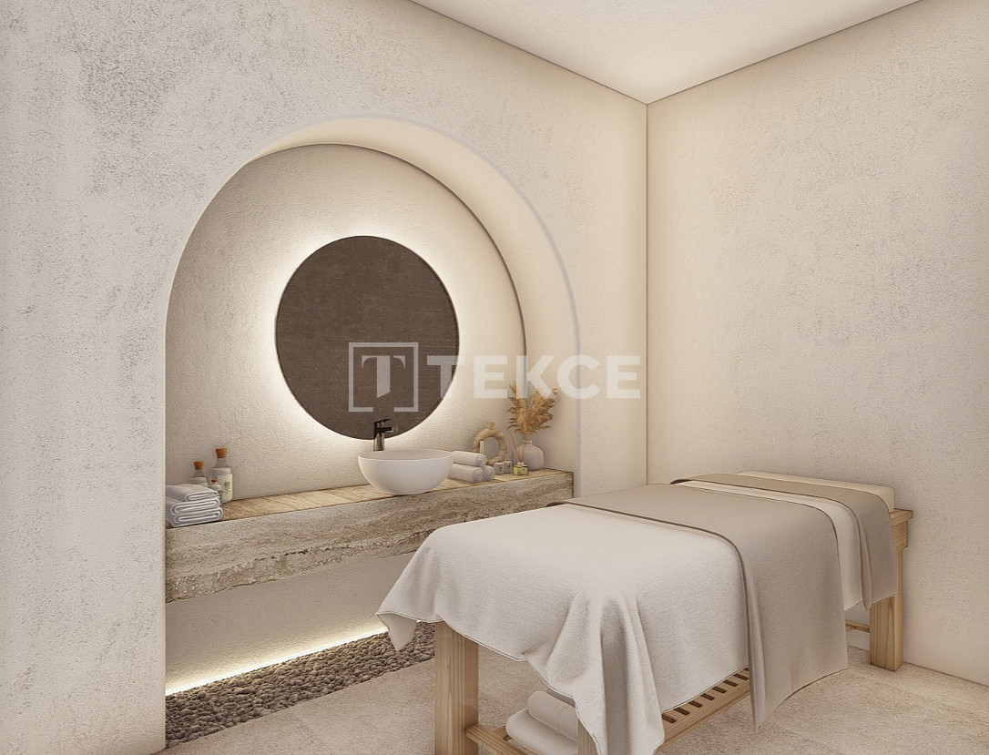 Квартиры на продажу в Измире находятся всего в 200 метрах от рынка, в 1,2 км от ресторанов, в 1,5 км от пляжа, в 10 км от пристани для яхт, в 6 км от больницы, в 11 км от центра серфинга Alaçatı Port и в 85 км от аэропорта имени Аднана Мендереса.