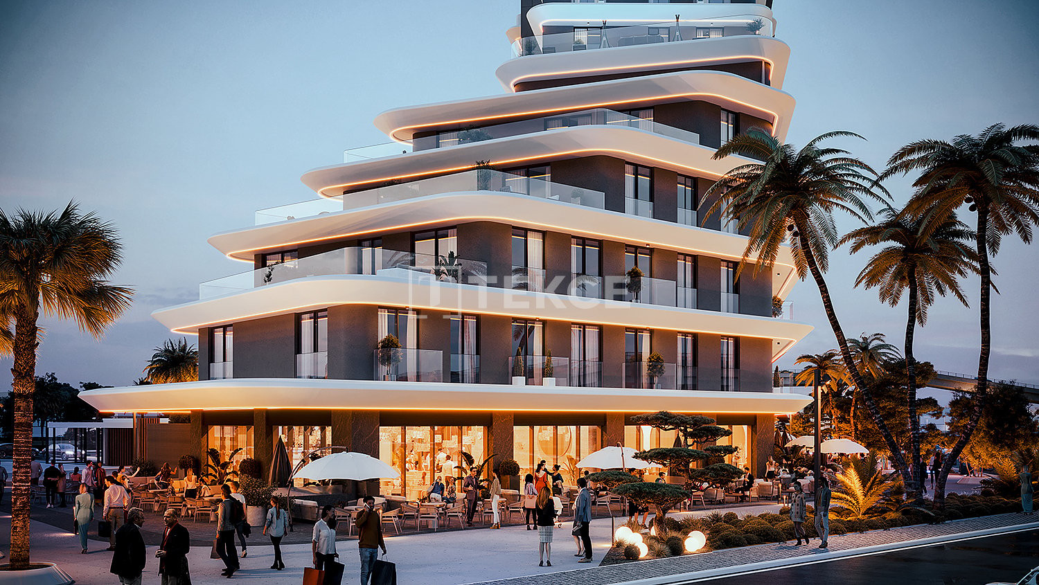 Квартиры в Измире находятся в 200 м от метро, ж/д и автобусных остановок, в 250 м от моря, в 450 м от торгового центра, в 2 км от площади Алсанджак и парка культуры, в 3 км от прибрежного парка Кордон, в 20 км от аэропорта Аднана Мендереса и в 50 км от пляжей Урла.