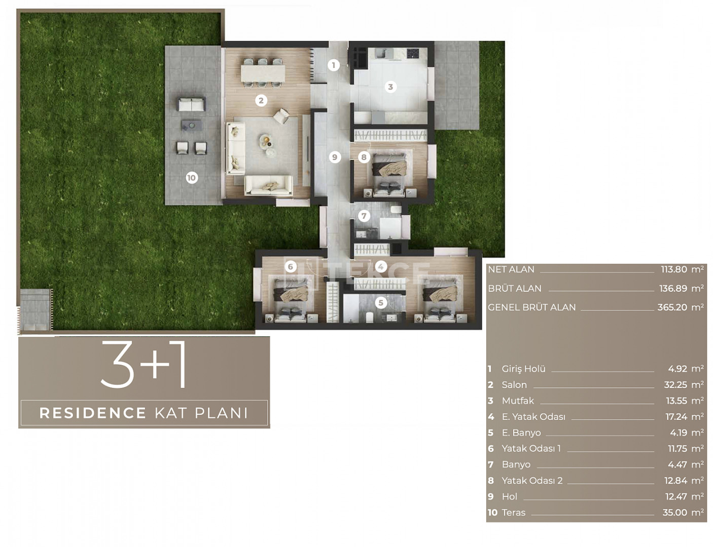 Проект включает разнообразные типы жилья: апартаменты на среднем этаже, дуплексы и квартиры с собственным садом. Всего комплекс насчитывает 46 жилых квартир и 77 вилл, расположенных на участке площадью 56 000 м². На территории предусмотрены теннисный корт, зоны отдыха с возможностью использования в любое время года, детская площадка, прогулочные и беговые дорожки, зелёные зоны, социальный клуб, открытый бассейн, ресторан и кафе. Для удобства и безопасности жителей работают генератор, система водоснабжения, круглосуточная охрана и видеонаблюдение, служба скорой помощи и услуги консьержа.