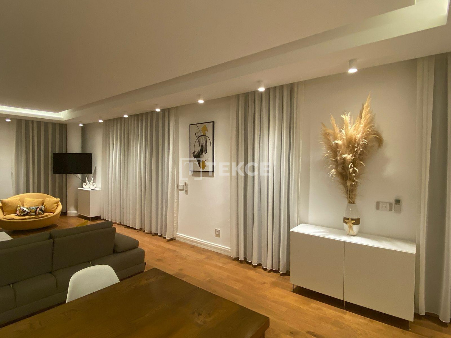 Вилла включает в себя 5 спален, просторную гостиную, отдельную кухню, прачечную и кладовую под лестницей между этажами, а также 2 ванных комнаты в двух спальнях и 2 ванных комнаты на каждом этаже. Дополнительно предусмотрены кладовая, садовая терраса, отдельный сад с ландшафтным дизайном и балкон. Вилла оборудована высококачественными материалами, включая стальную дверь, алюминиевые оконные системы, ламинат и керамические полы. Кухонные шкафы и двери выполнены из качественных материалов, установлены электронные системы жалюзи, камеры видеонаблюдения и камин.