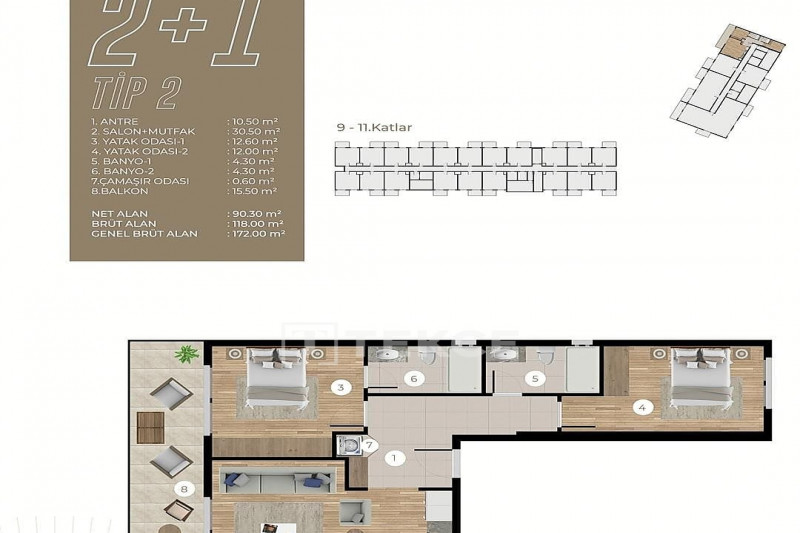 Комплекс из 7 блоков состоит из 848 квартир, 1 гостиничного блока и открытого базара. На его территории есть большой сад, крытый и открытый бассейны, пешеходные дорожки, теннисный корт, футбольные и баскетбольные площадки, декоративные бассейны, фитнес-центр, сауна, паровая баня, спа, турецкая баня, крытые и открытые детские игровые площадки, круглосуточная охрана и система камер видеонаблюдения, управляющая компания, крытые и открытые парковки. Кроме того, в комплексе есть станция зарядки электромобилей, почасовые услуги водителя, частный курьер, скорая помощь, услуги по уходу за домашними животными и ветеринарные услуги, зона для занятий спортом и круглосуточная служба ресепшн.