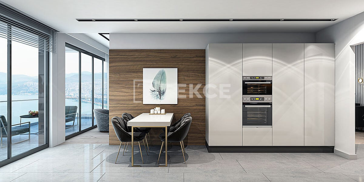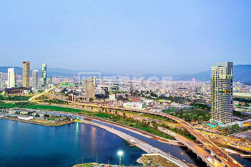 Престижные квартиры в Измире, Конак, находятся в комплексе, построенном в 200 м от моря (напрямую по карте), в 300 м от остановок метро, поезда и автобуса, в 400 м от торговых центров, в 2 км от площади Алсанджак и Кюльтюрпарка, в 3 км от пляжа Кордон, в 20 км от аэропорта Аднан Мендерес и в 50 км от пляжей Урлы.