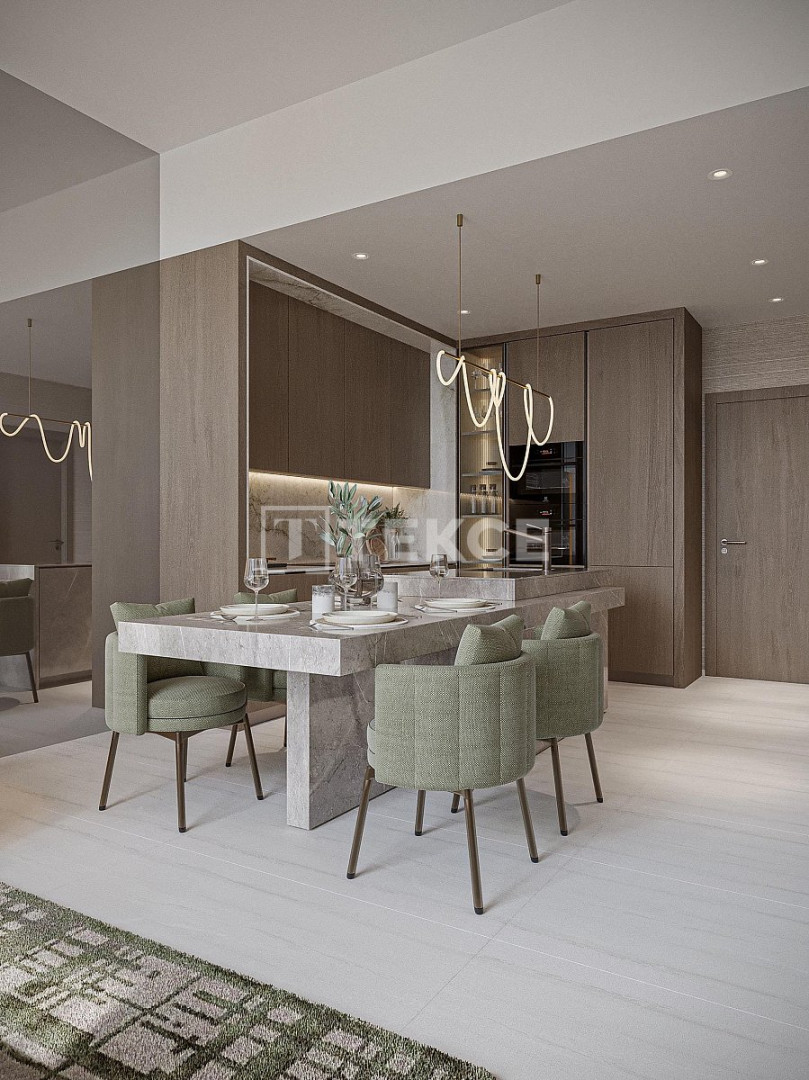 Новые квартиры предлагают все удобства для современной жизни. Каждая квартира оснащена полностью оборудованной кухней, отделкой премиум-класса, высокими потолками и большими окнами для максимального естественного освещения. В распоряжении жильцов — бассейн, фитнес-центр, многофункциональный зал, детская игровая площадка, ландшафтные сады, зоны барбекю, беговые дорожки и общественное кафе. Также на территории комплекса предусмотрены зеленые зоны и места для отдыха на свежем воздухе. Безопасность, крытая парковка и круглосуточное обслуживание обеспечивают комфортное проживание.